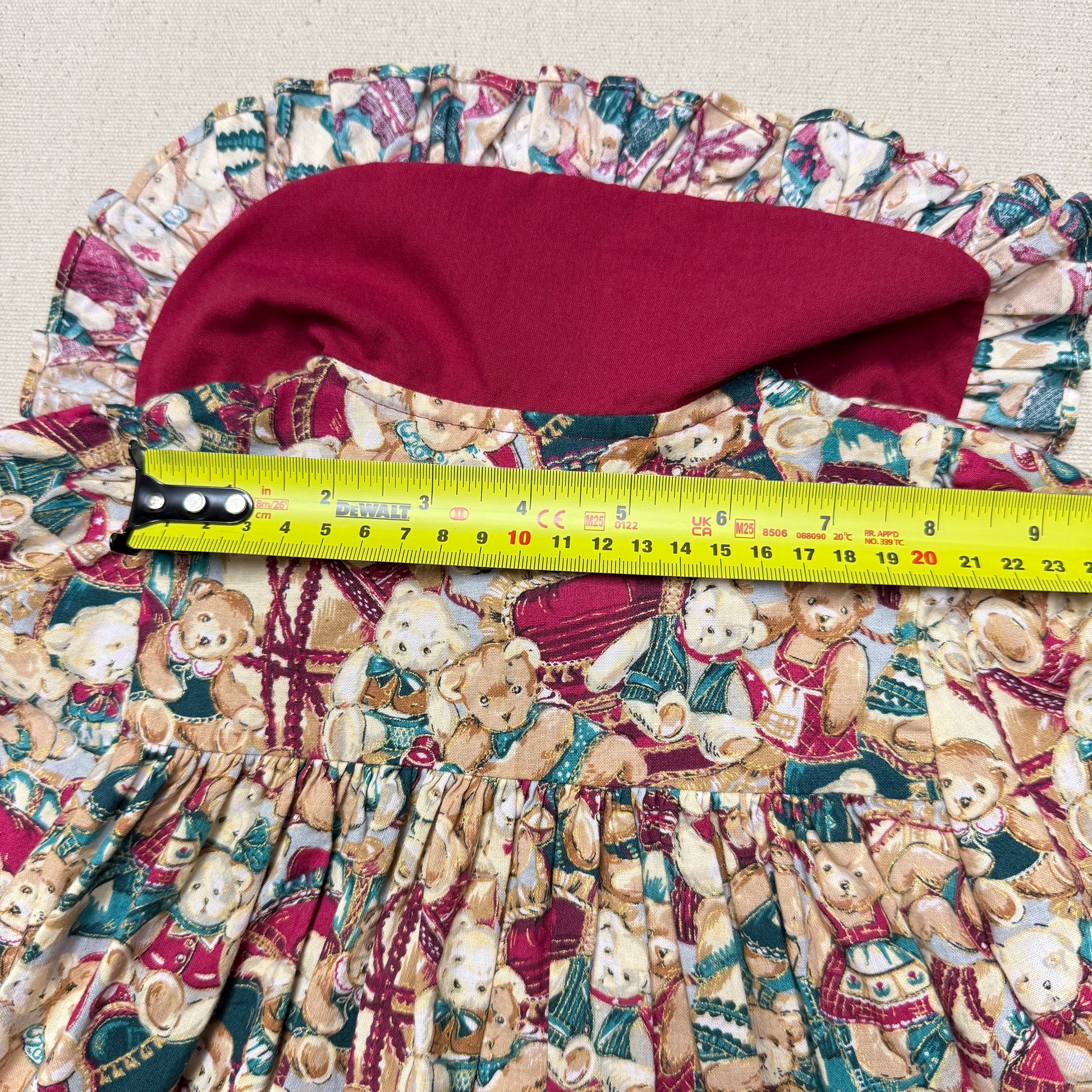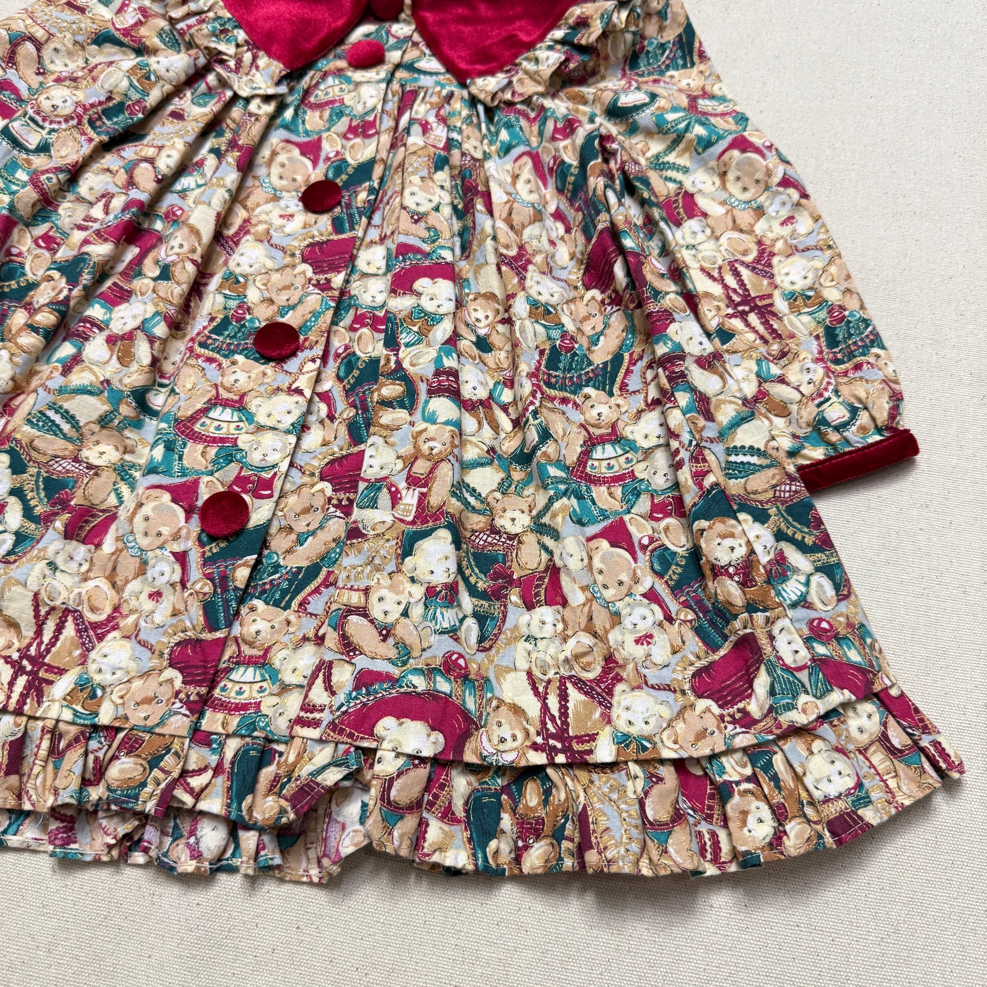 80s 90s Kids Toddler Vintage Teddy Bear AOP Christmas Pattern Velvet Round Collar Dress / 24m 2T dress