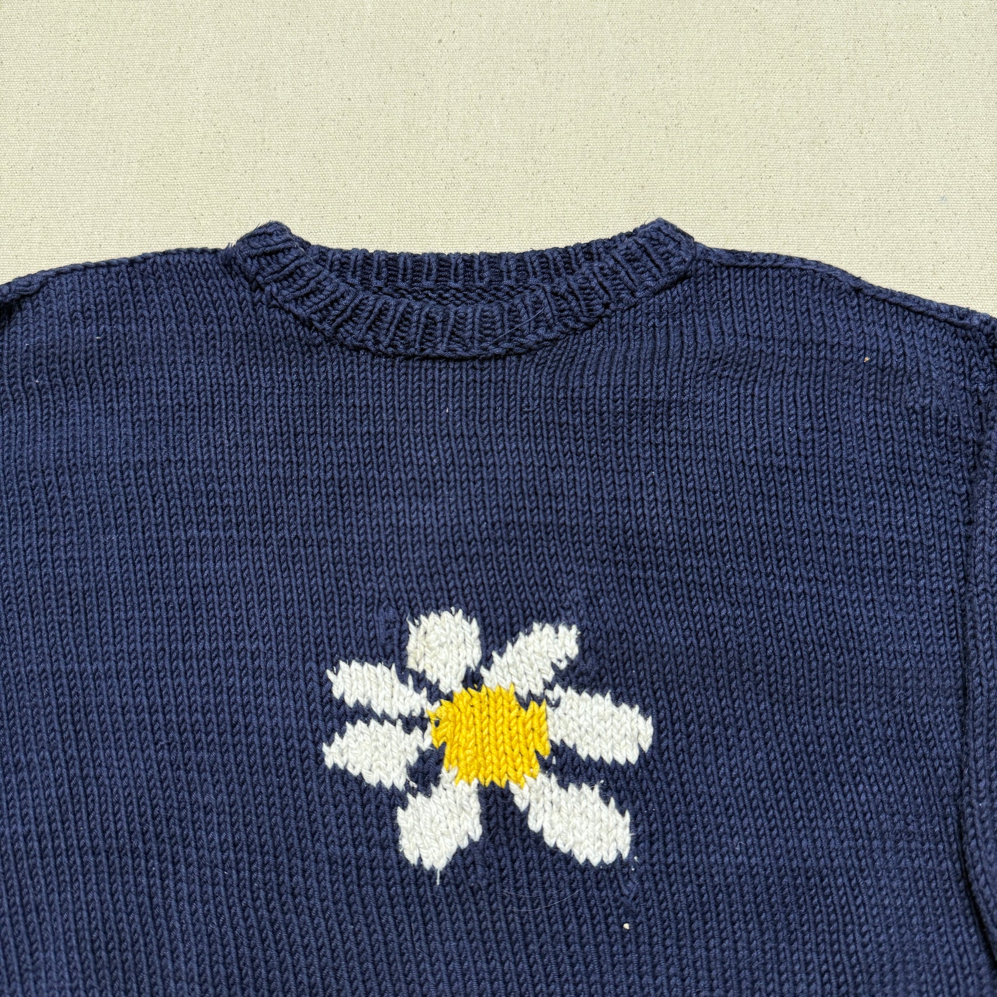 80s 90 Kids Toddler Vintage Flower Embroidered Simple Design Cotton Knit Sweater / 3T 4T 5T