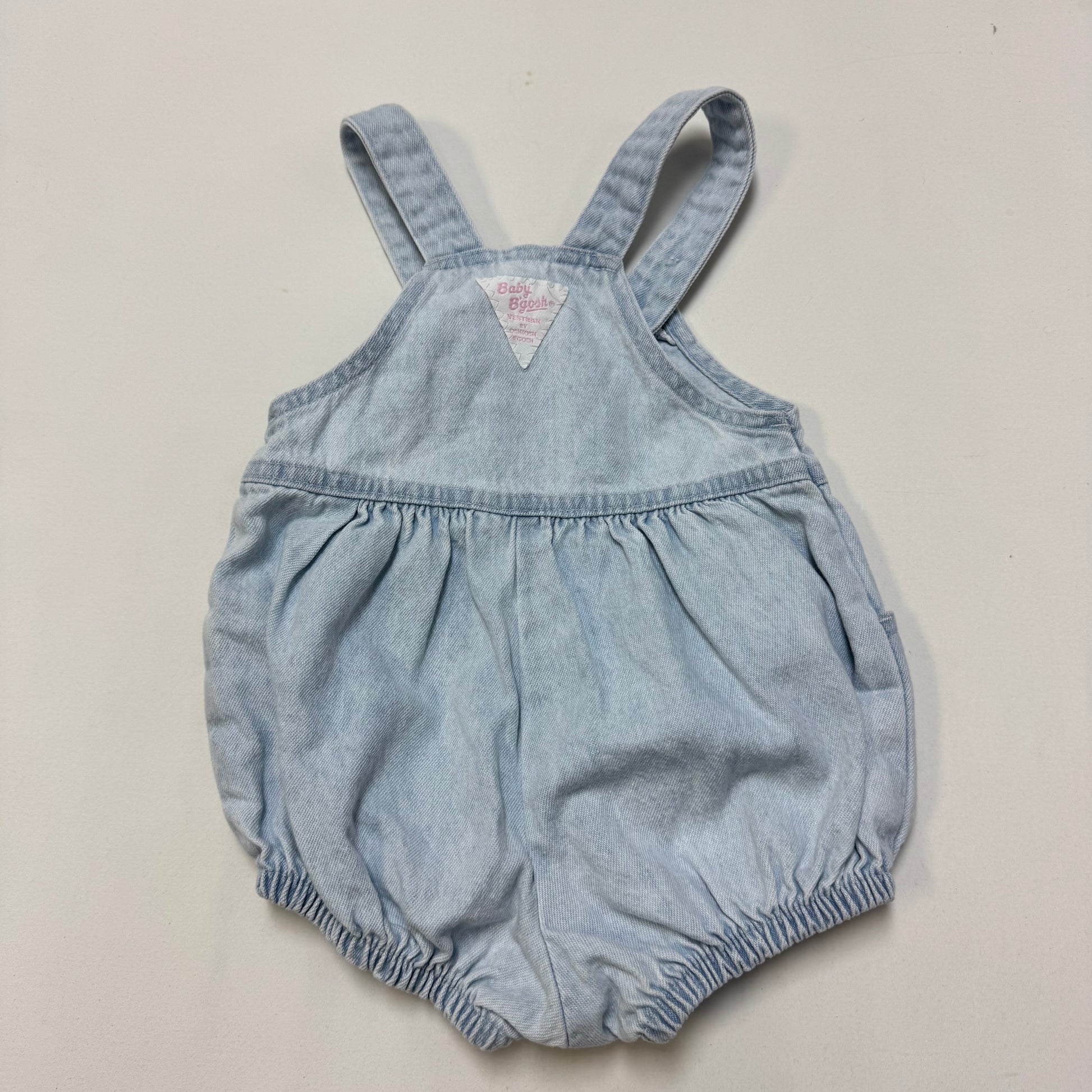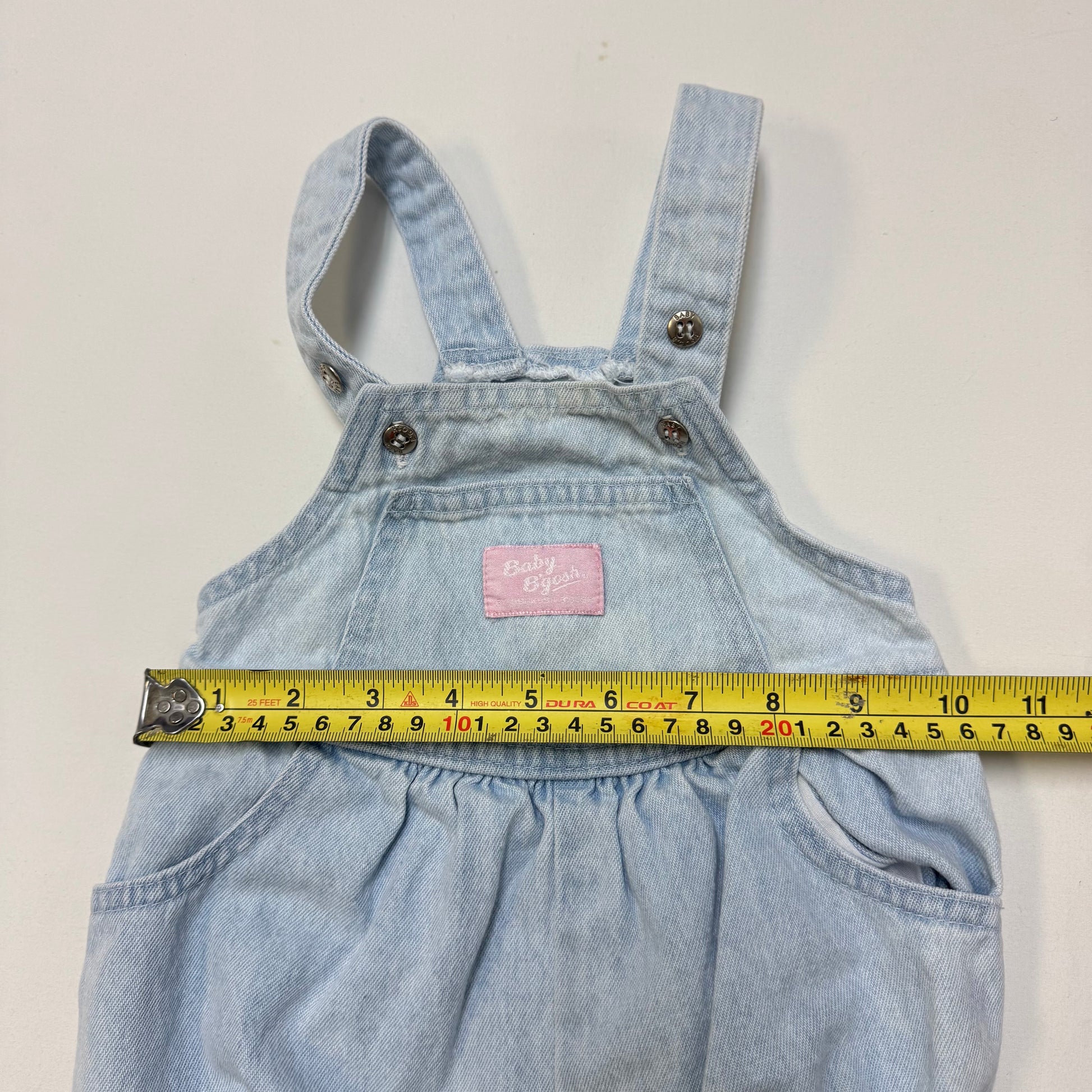 90s Kids Baby Vintage Oshkosh Bgosh Light Denim Shortall Romper Pink Label /6m/9m/12m