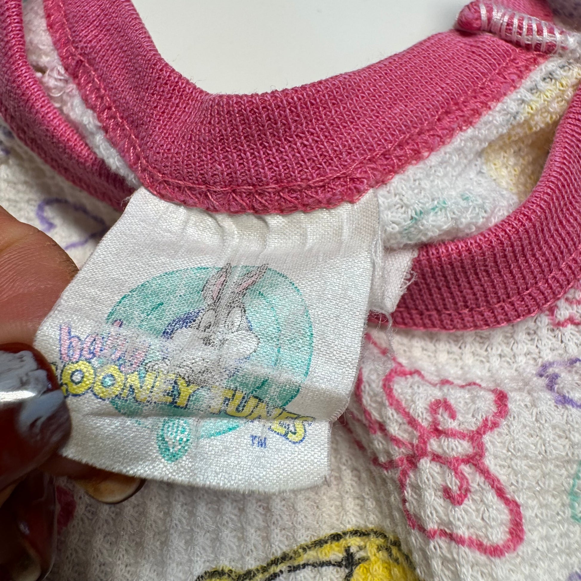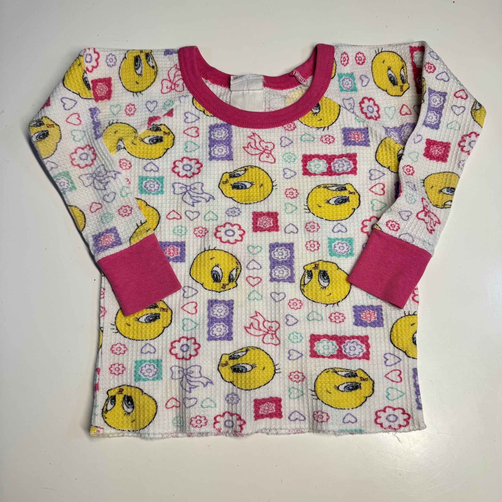 90s Kids Toddler Vintage Looney Tunes Tweety Bird Waffle Long Sleeve Pullover Shirt AOP 18m 2Y 3Y