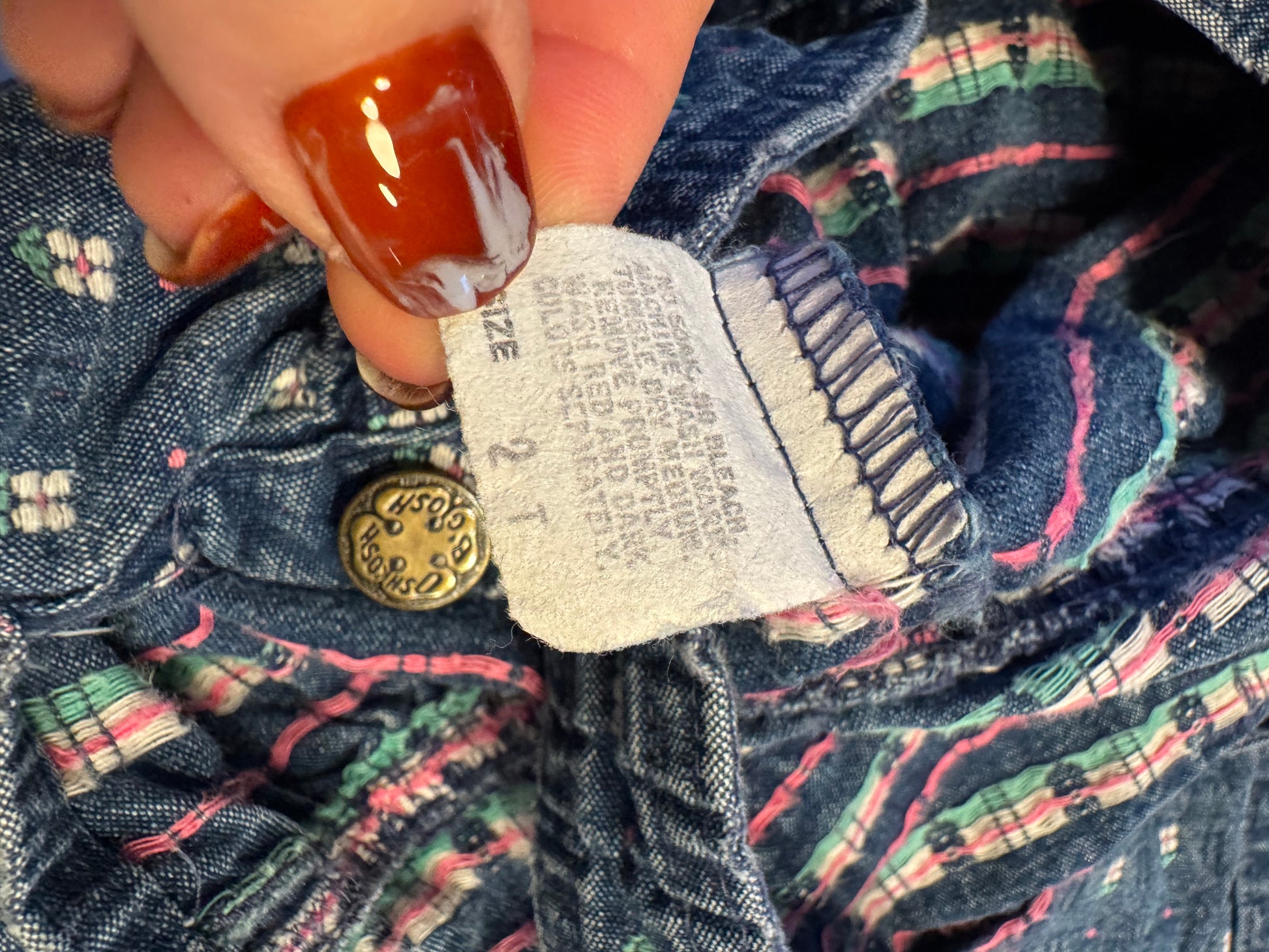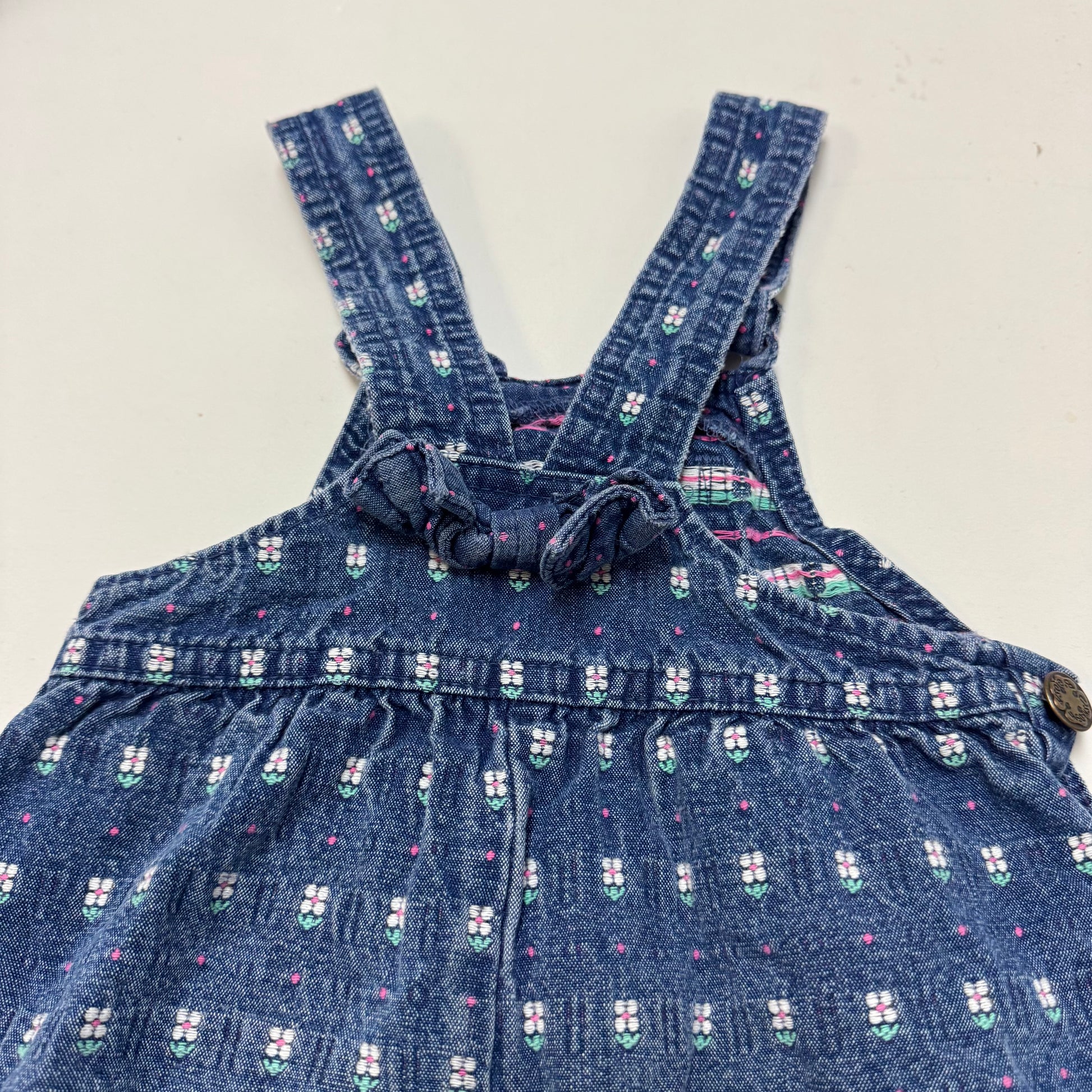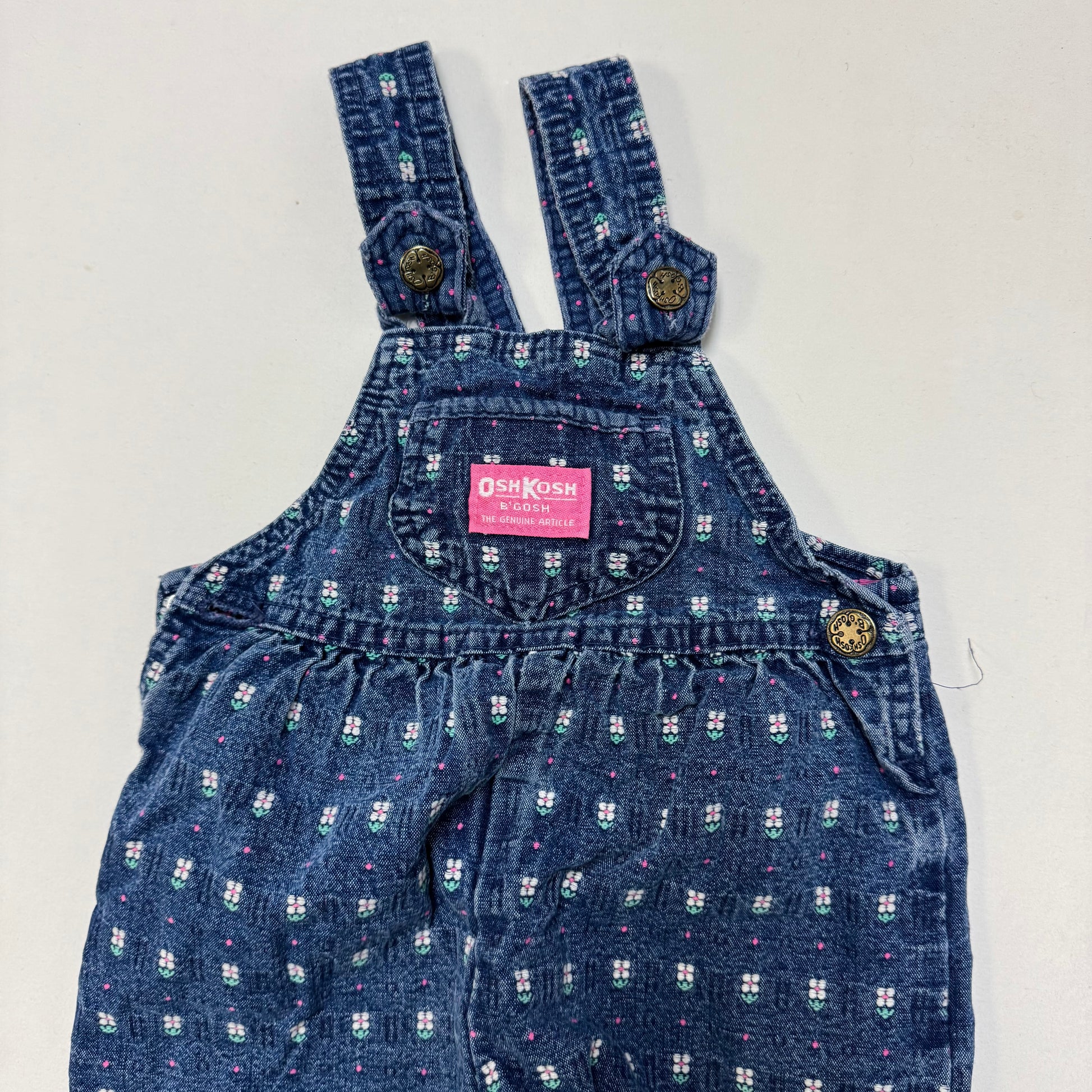 90s Kids Toddler Infant Vintage Baby B’Gosh Oshkosh Denim White Flower Embroidered Print Overall /2T / Made in USA