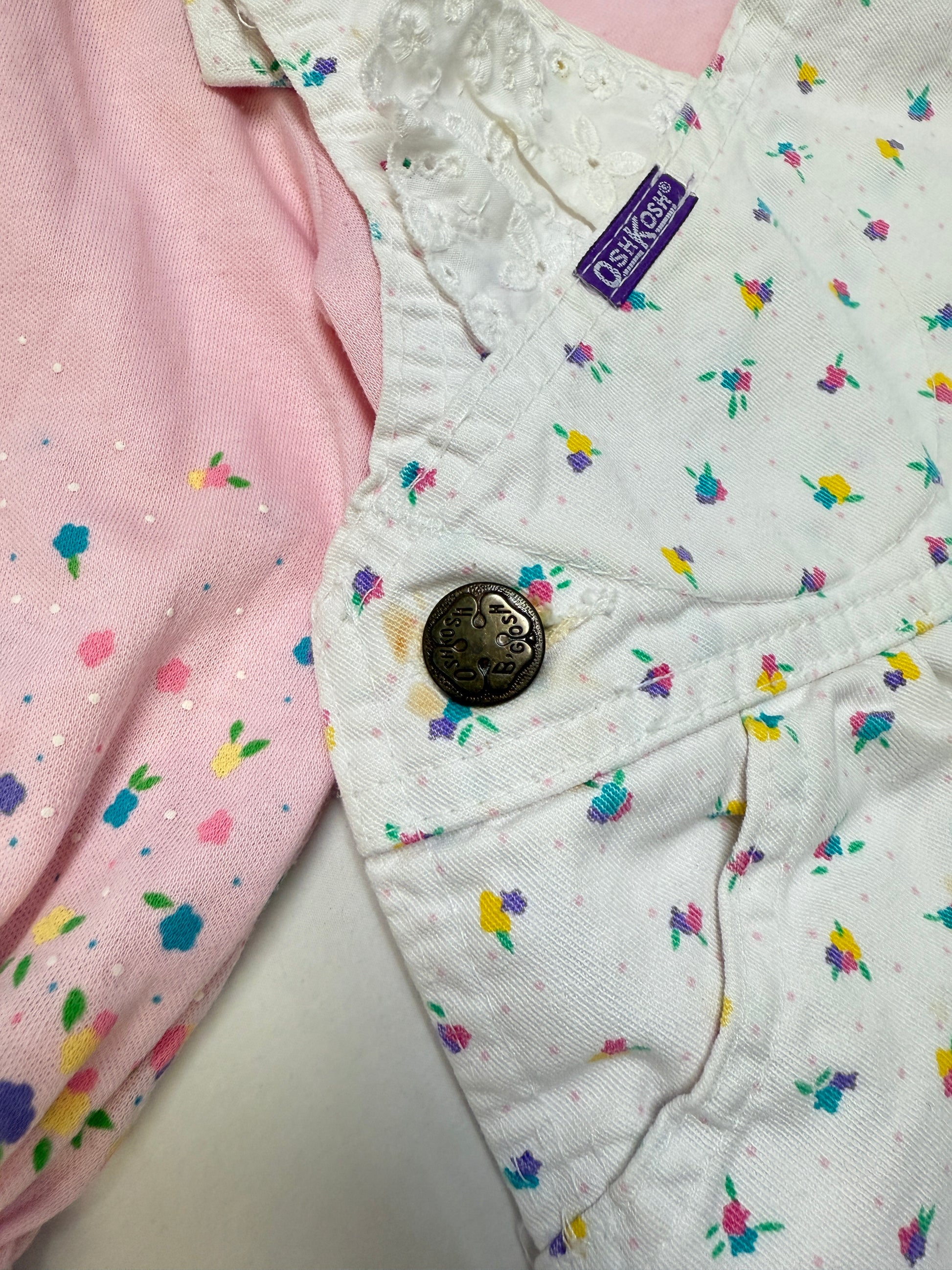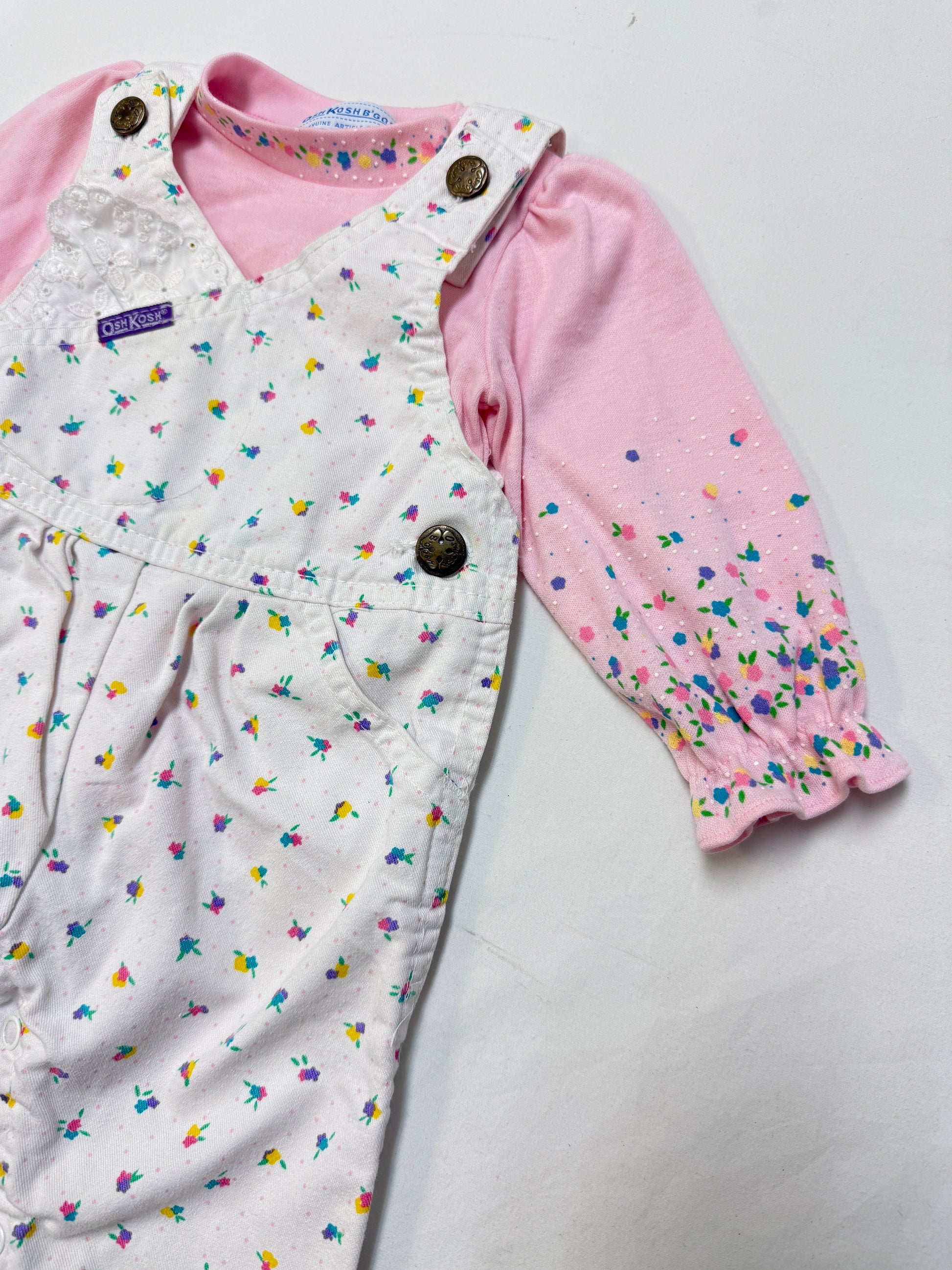 90s Kids Infant Baby Vintage Oshkosh Bgosh Floral AOP Longsleeve Shirt and Overall 2pc Set / 0m 3m / Made in USA