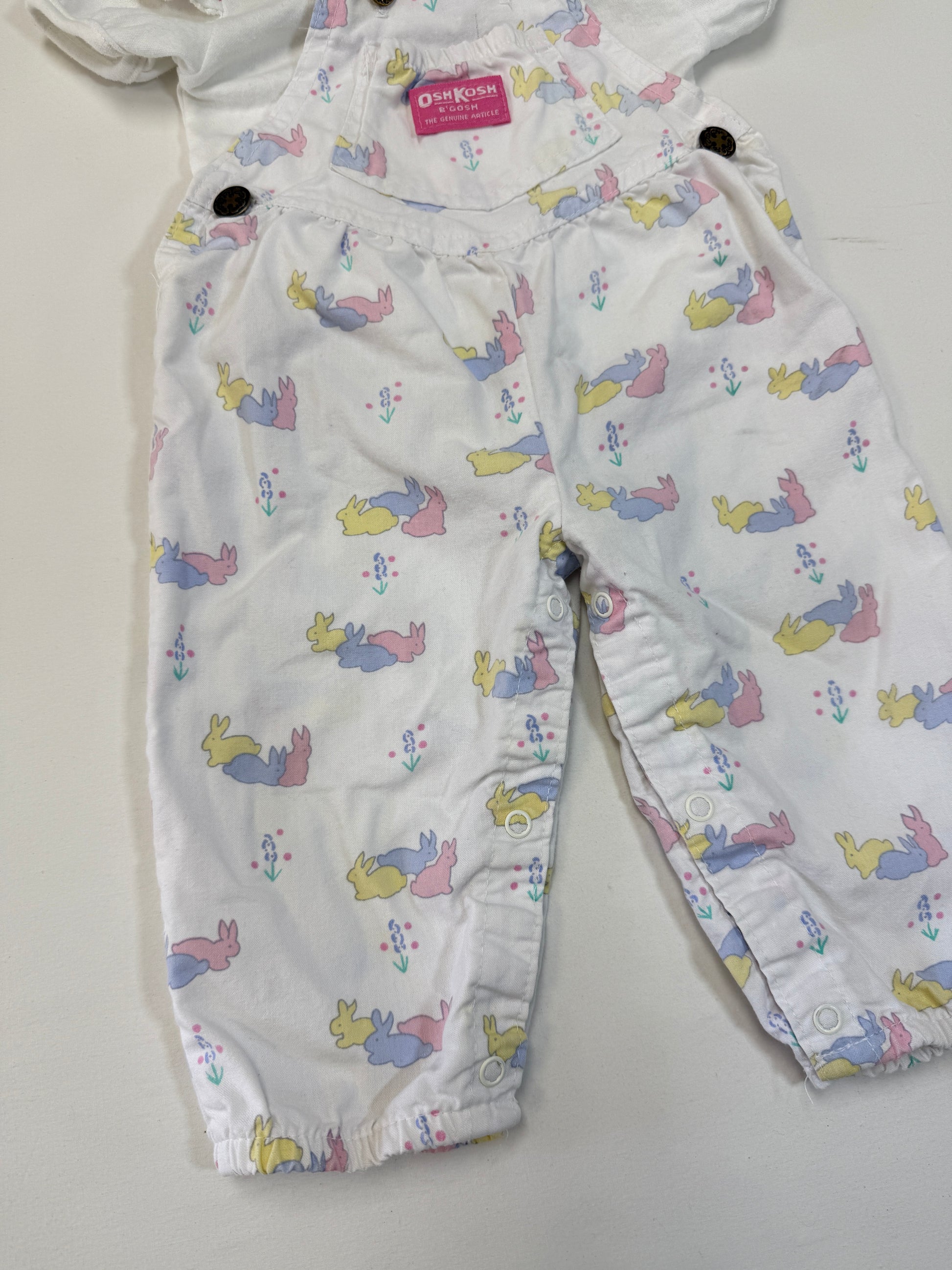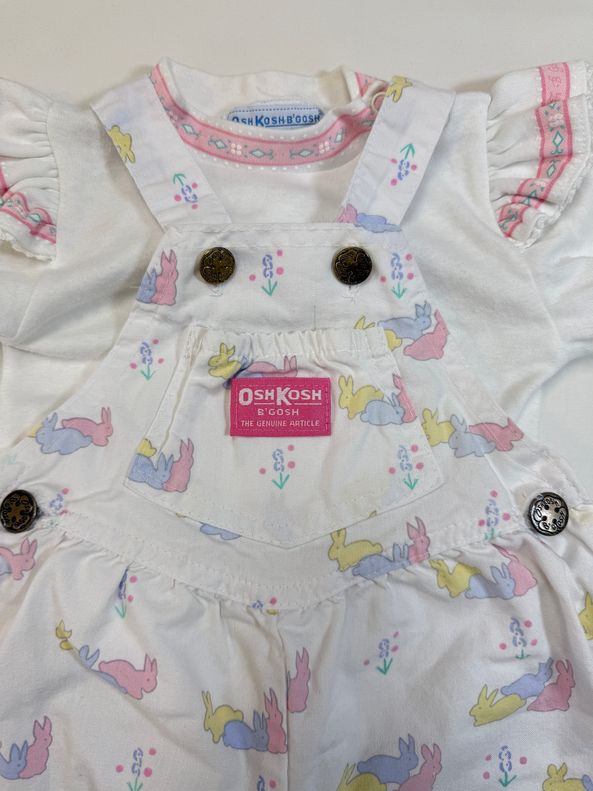 90s Kids Infant Baby Vintage Oshkosh Bgosh Rabitt AOP Overall and Raffle Sleeve Tshirt 2pc Set / 3m 6m 9m / Made in USA set