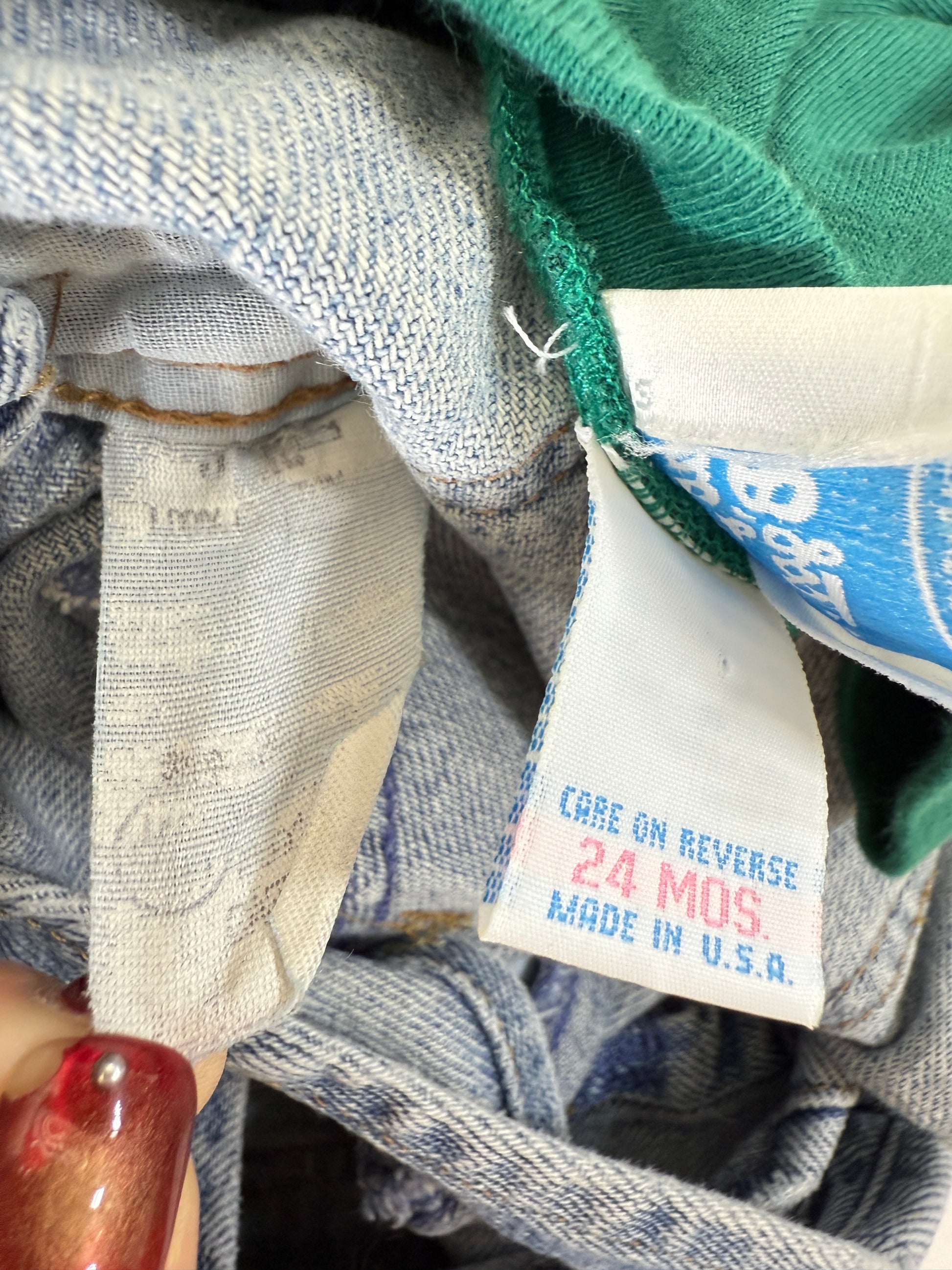 90s Kids Toddler Infant Vintage Oshkosh Bgosh Tshirt and Denim Overall 2pc Set / 12m 18m 24m / Made in USA set