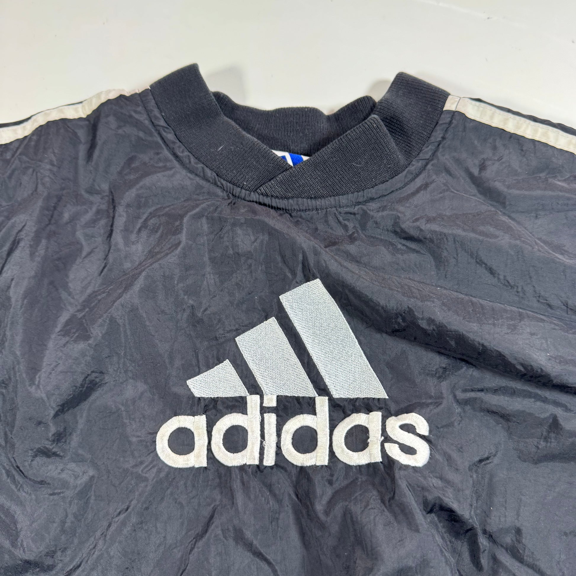 90s Vintage Adidas Kids Toddler Black Lined Pullover Sleeves Striped Windbreaker Sweatshirt Jacket Big Logo S 4T