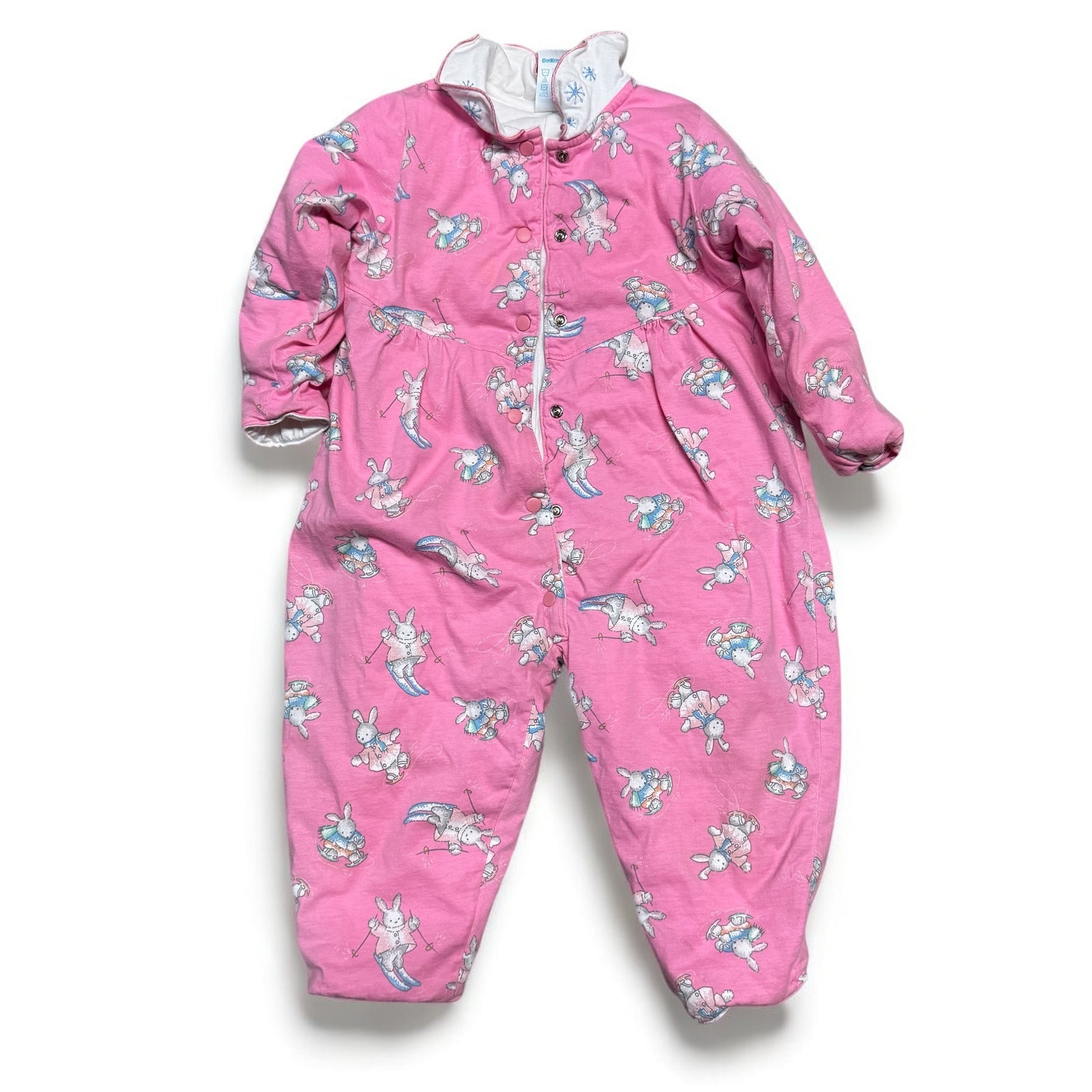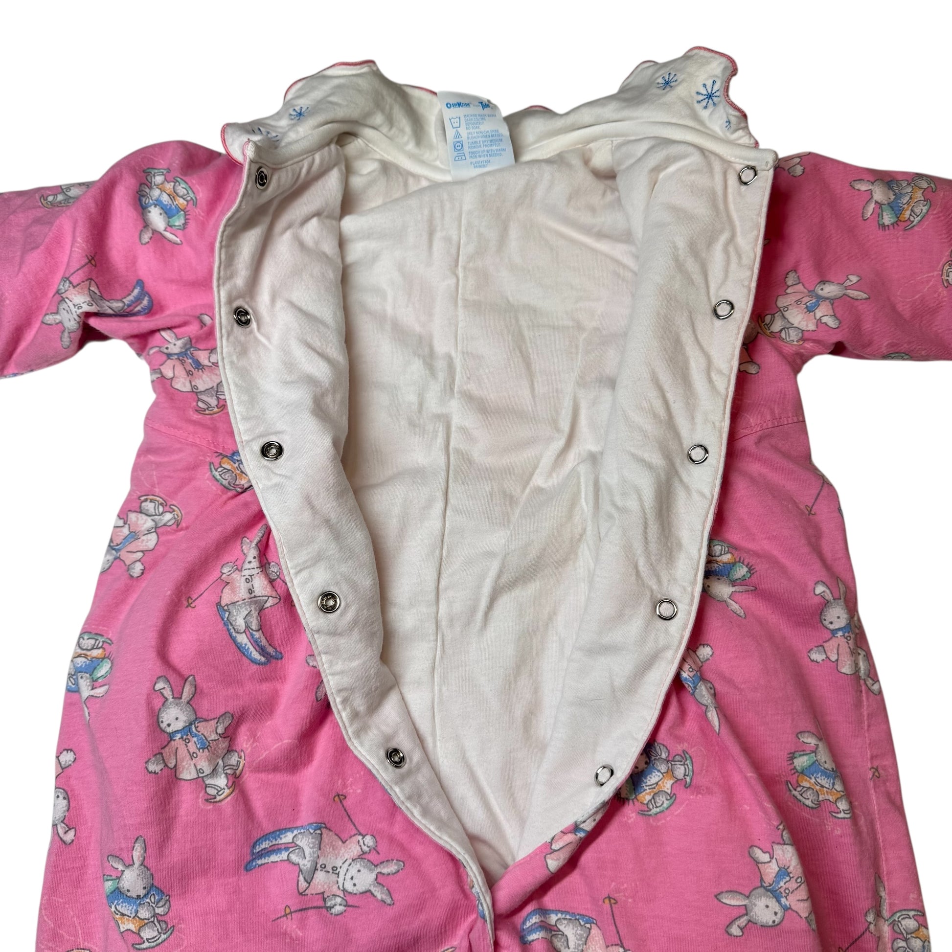 90s Kids Baby Vintage Oshkosh B’Gosh Bunny AOP Print Thick Lined Winter Onesie Romper Longsleeve Cotton Top / 18m/