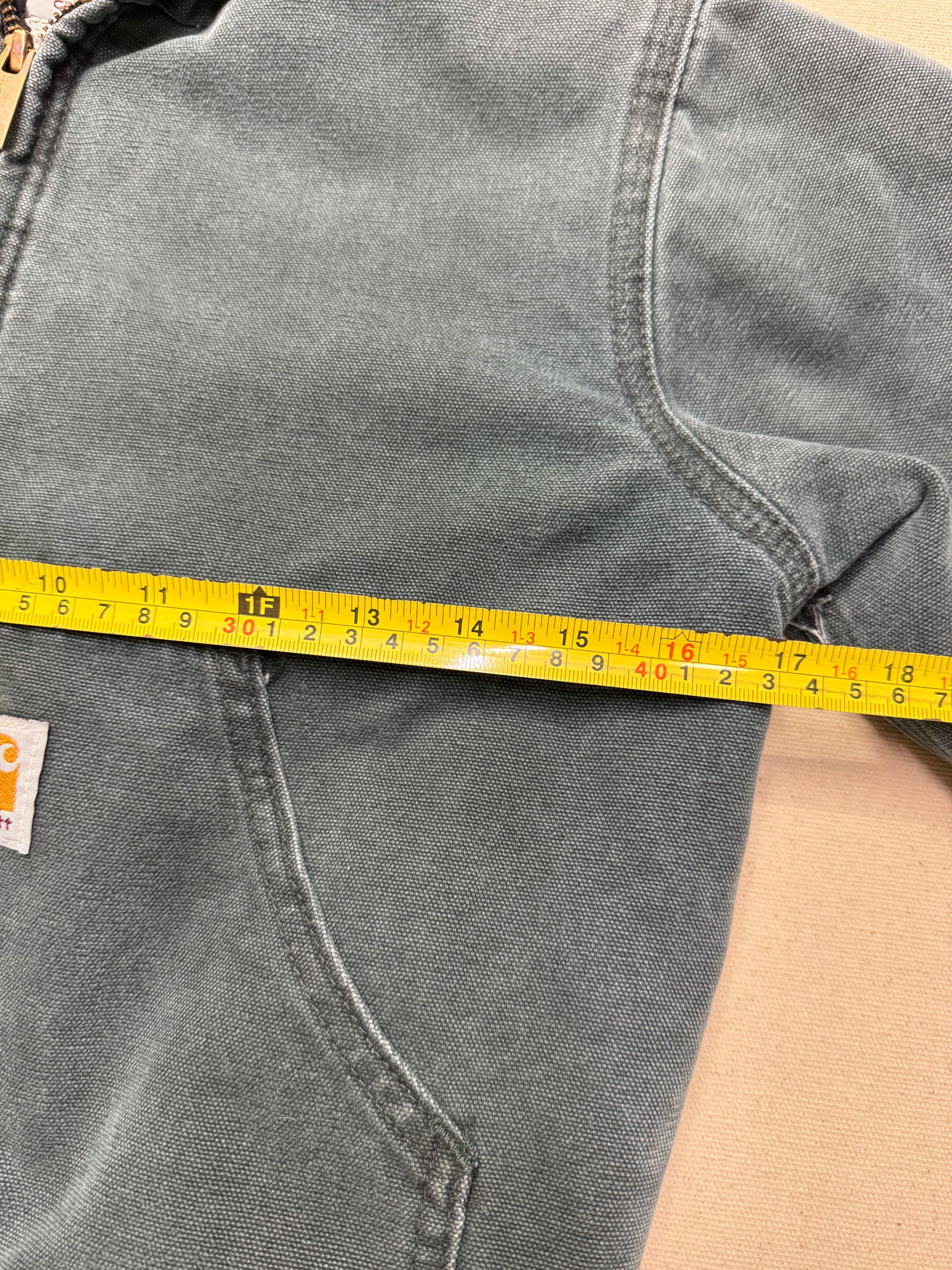 2002 Kids Youth Vintage Carhartt Dark Green Quilted Lined Hooded Active Jacket / 7y 8y 9y