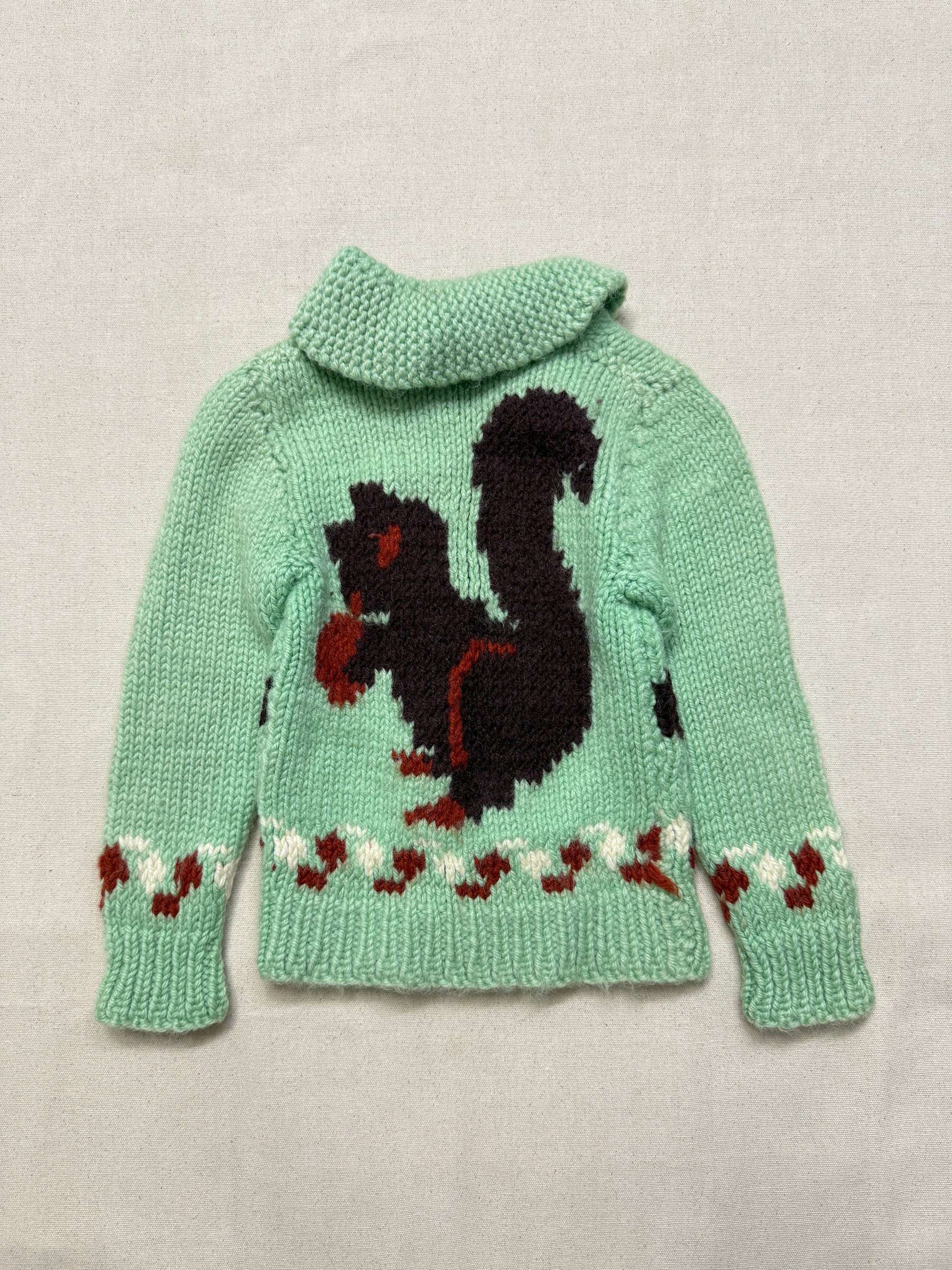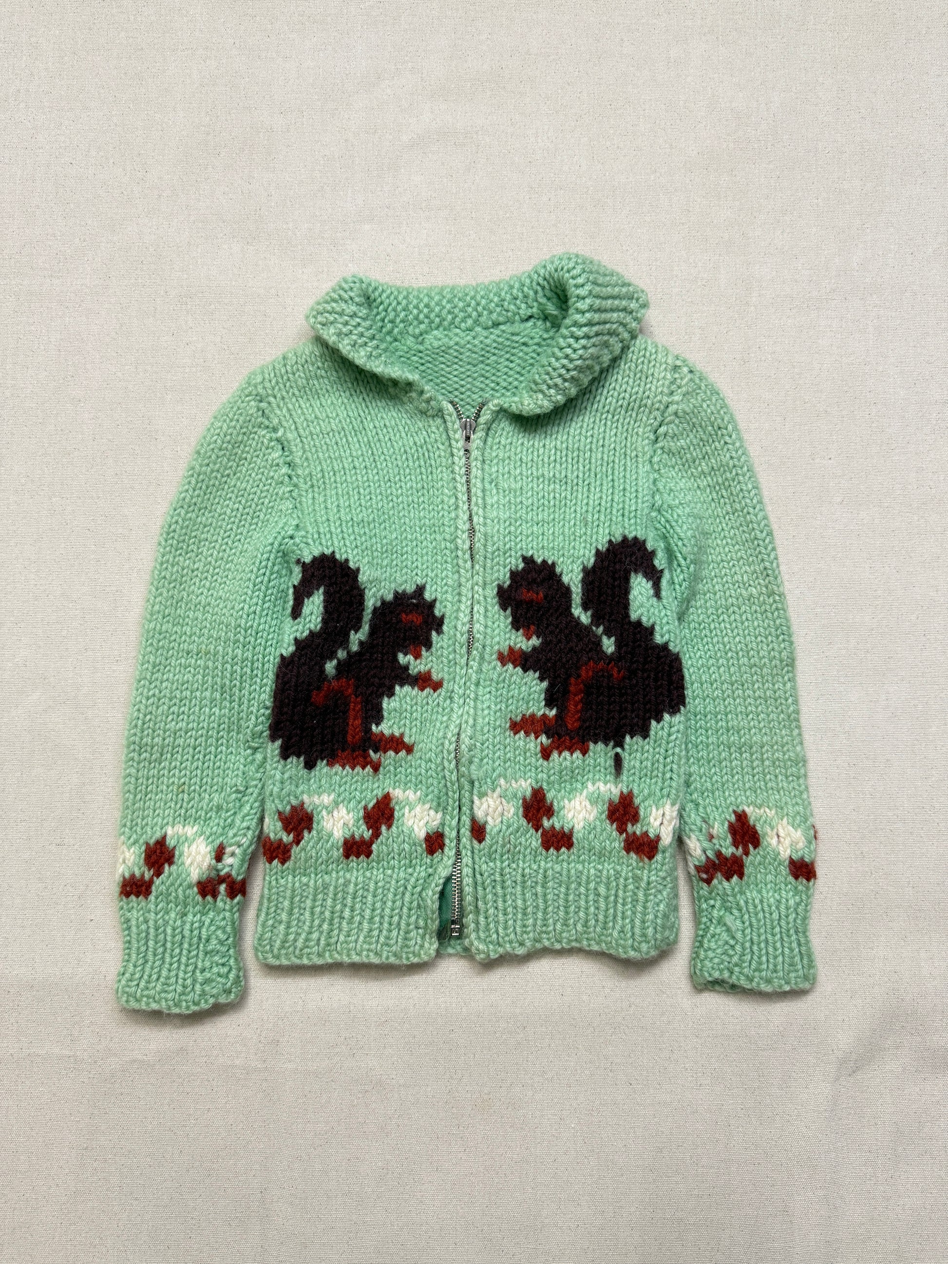 50s 60s Kids Toddler Vintage Mint Green Squirrel Lightning Zipper Cowichan Sweater / 3T 4T 5T