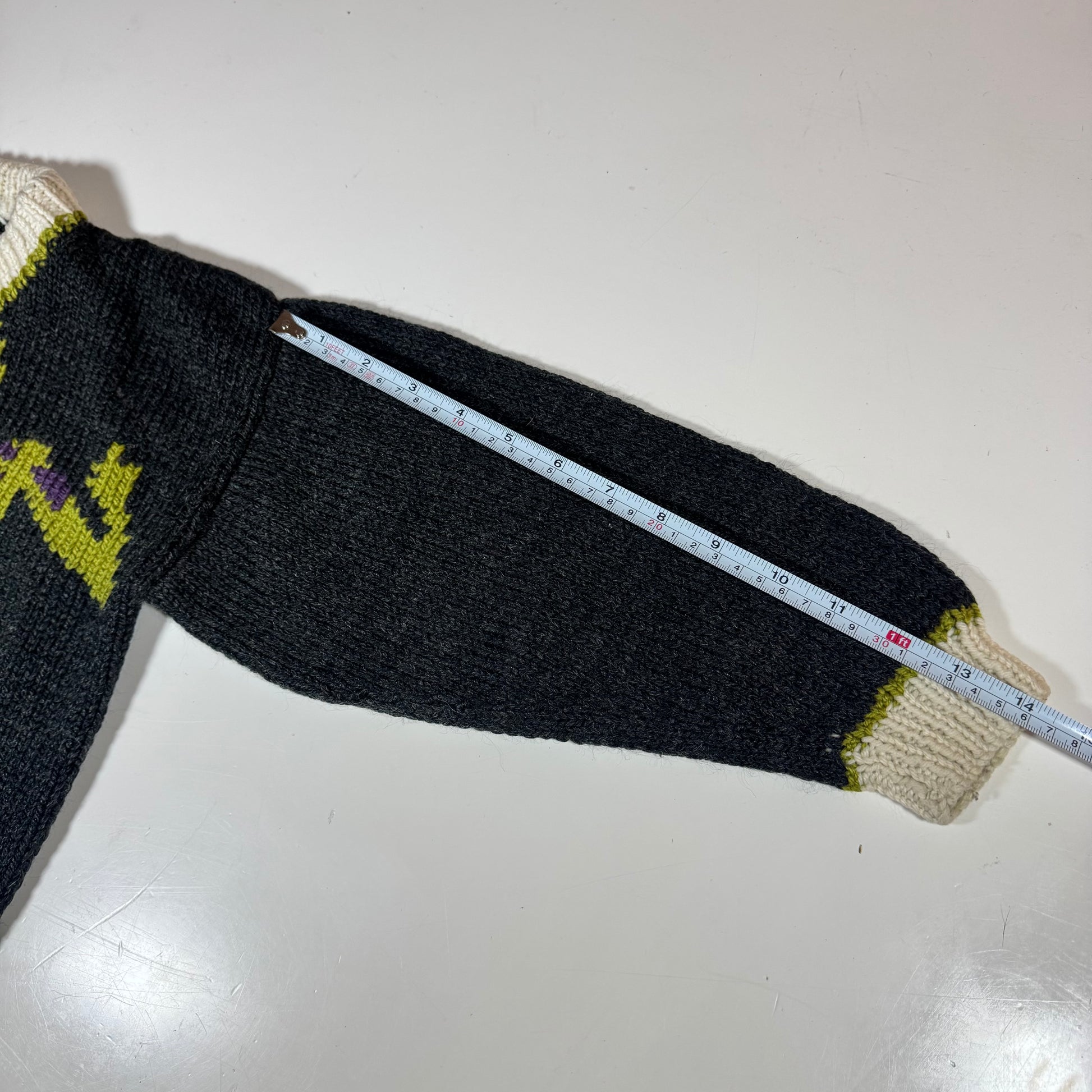 Kids Toddler Vintage Hand Knit Pullover Dark Gray AOP Cute Frogs Print 4Y 5Y 6Y