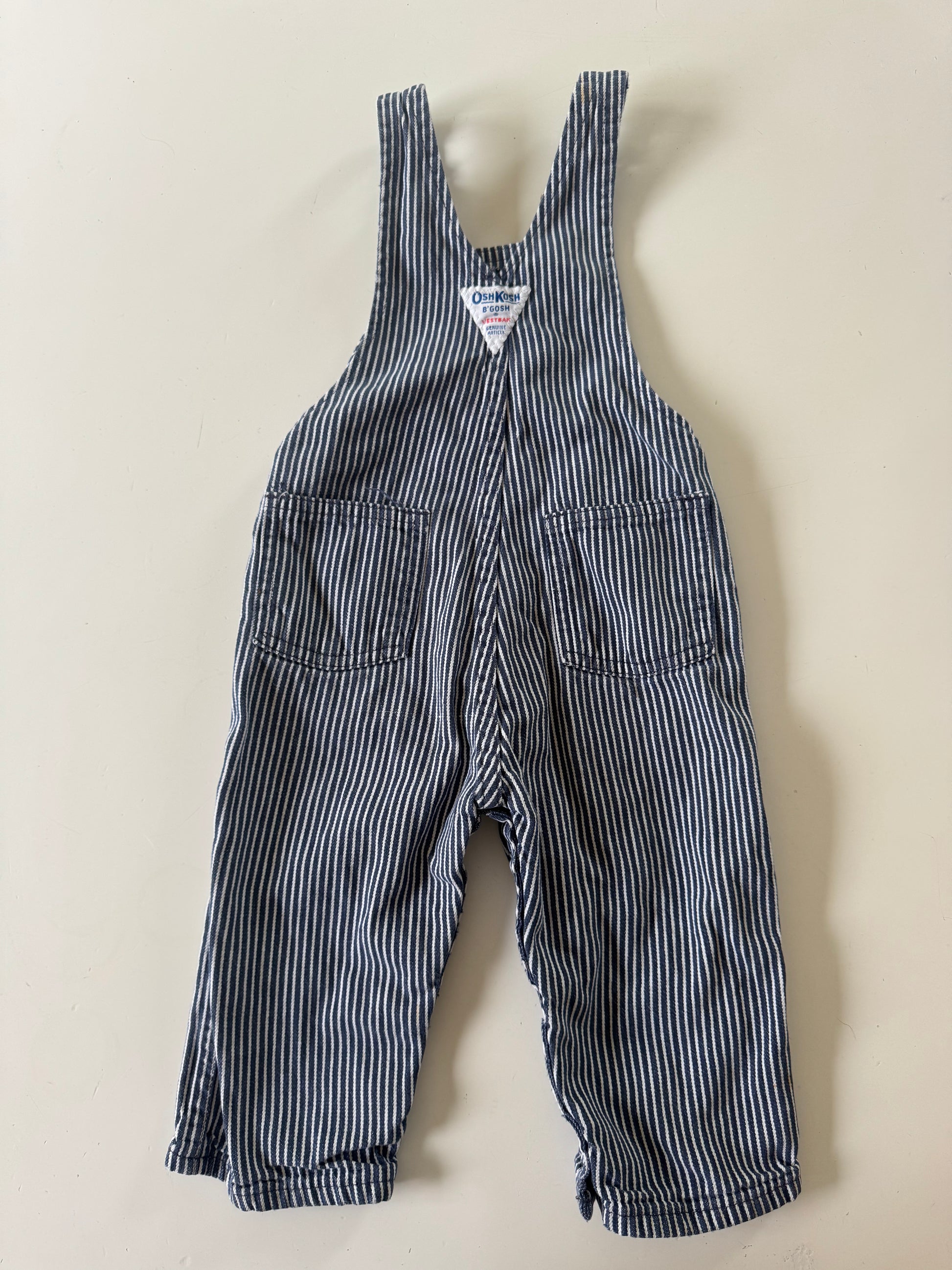 90s Kids Toddler Infant Vintage Baby B’Gosh Oshkosh Navy White Hickory Overalls //24m / Made in USA