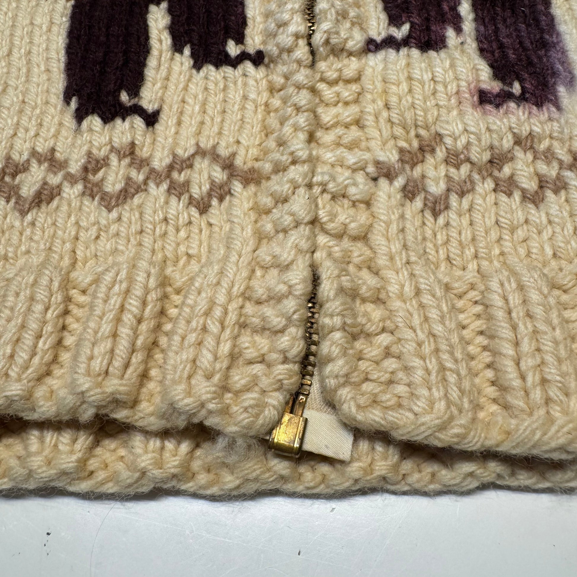 50s 60s Kids Toddler Vintage Beige Brown Royal Guard Heavy Talon Zipper Cowichan Sweater / 2Y 3Y 4Y