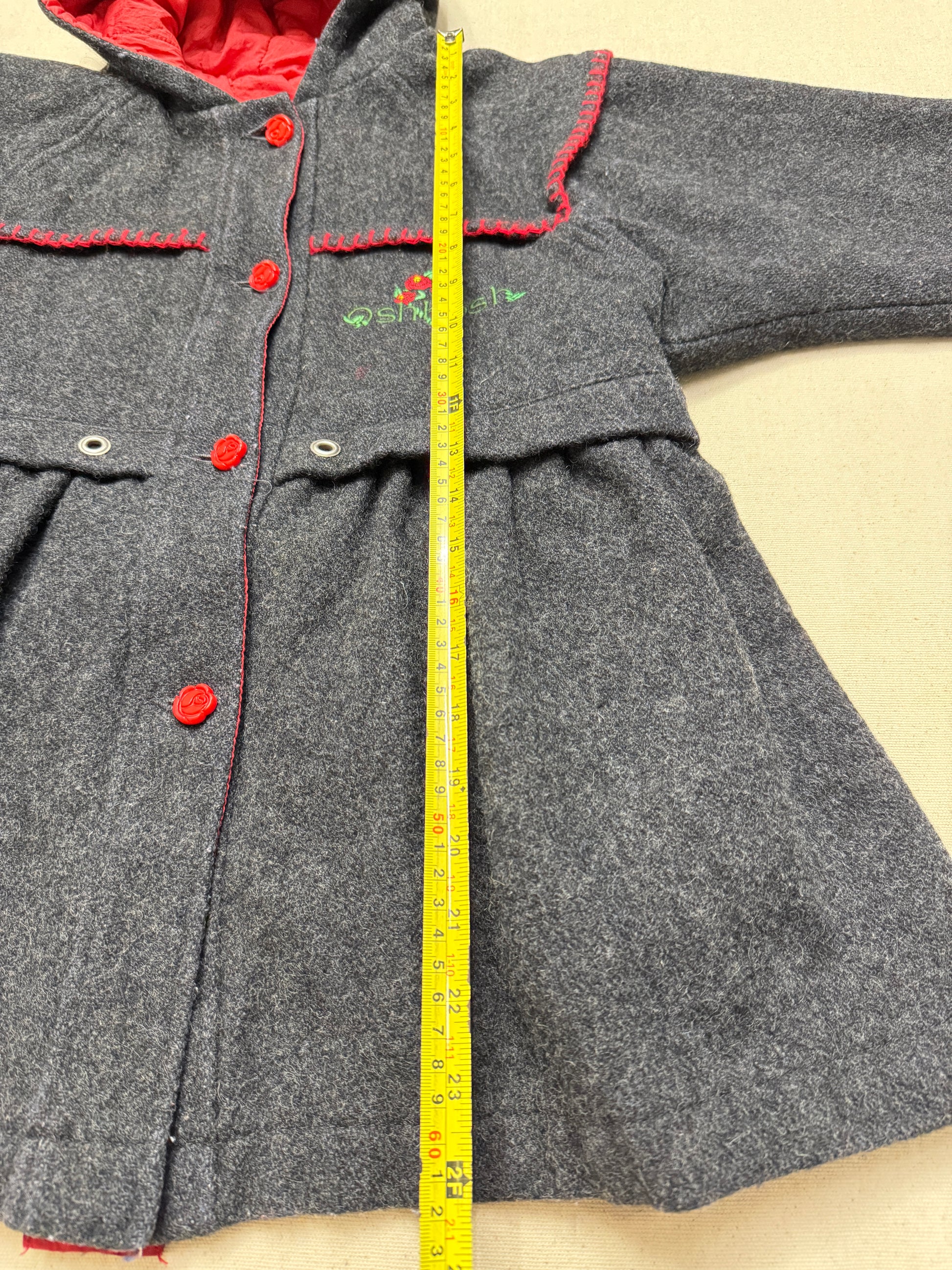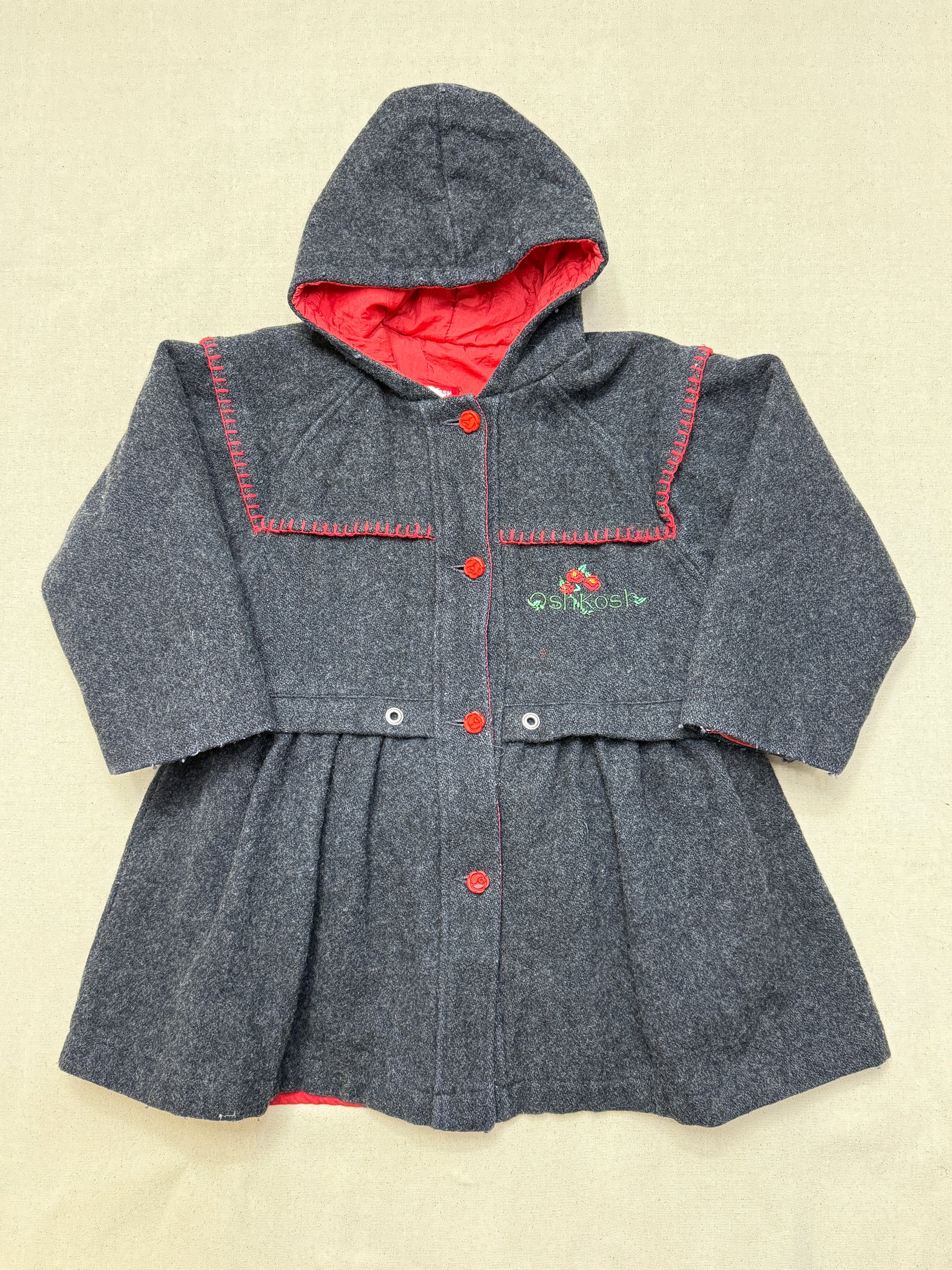 80s 90s Kids Vintage Oshkosh Bgosh Flower Rose Buttons A Line Lined Wool Jacket / 6y 7y