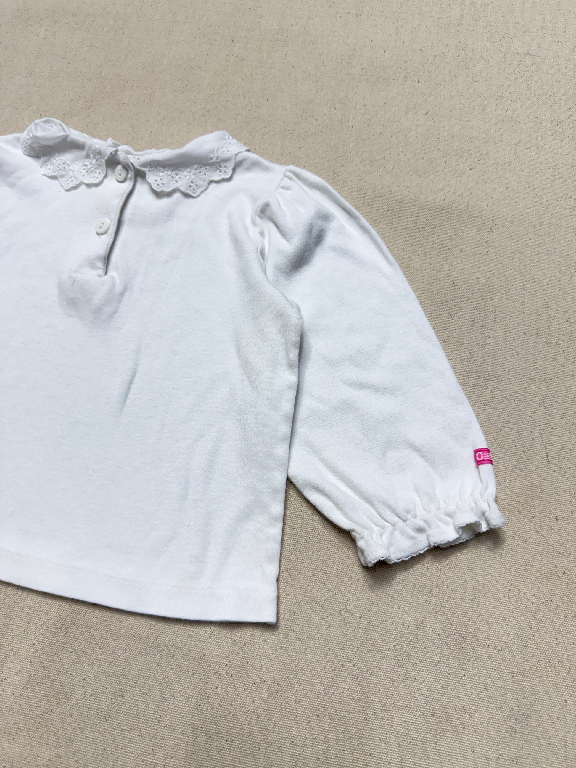 90s Kids Toddler Vintage Oshkosh Bgosh Lace Collared White Puffsleeve Longsleeve Top / 2T 3T / Made in USA