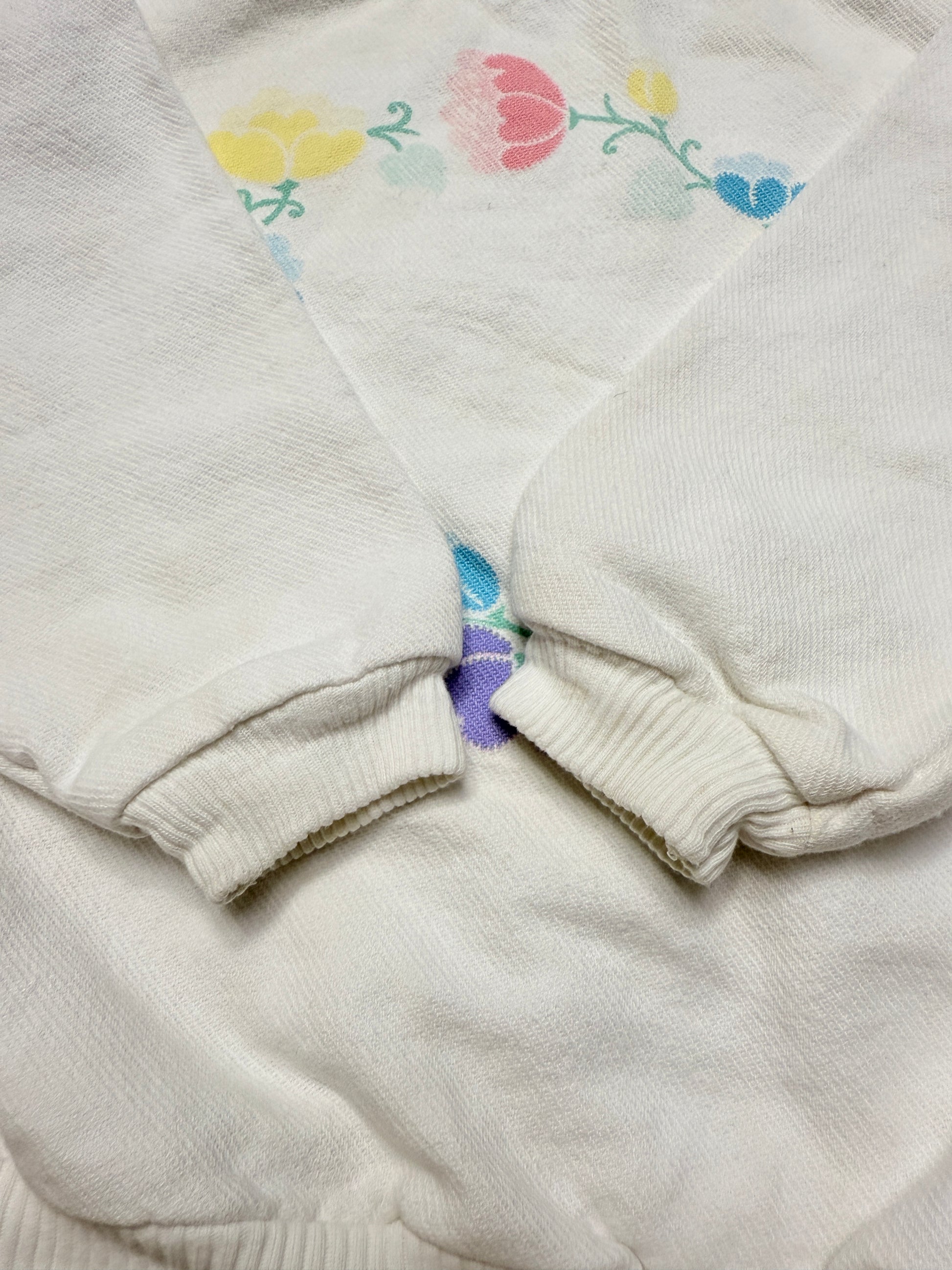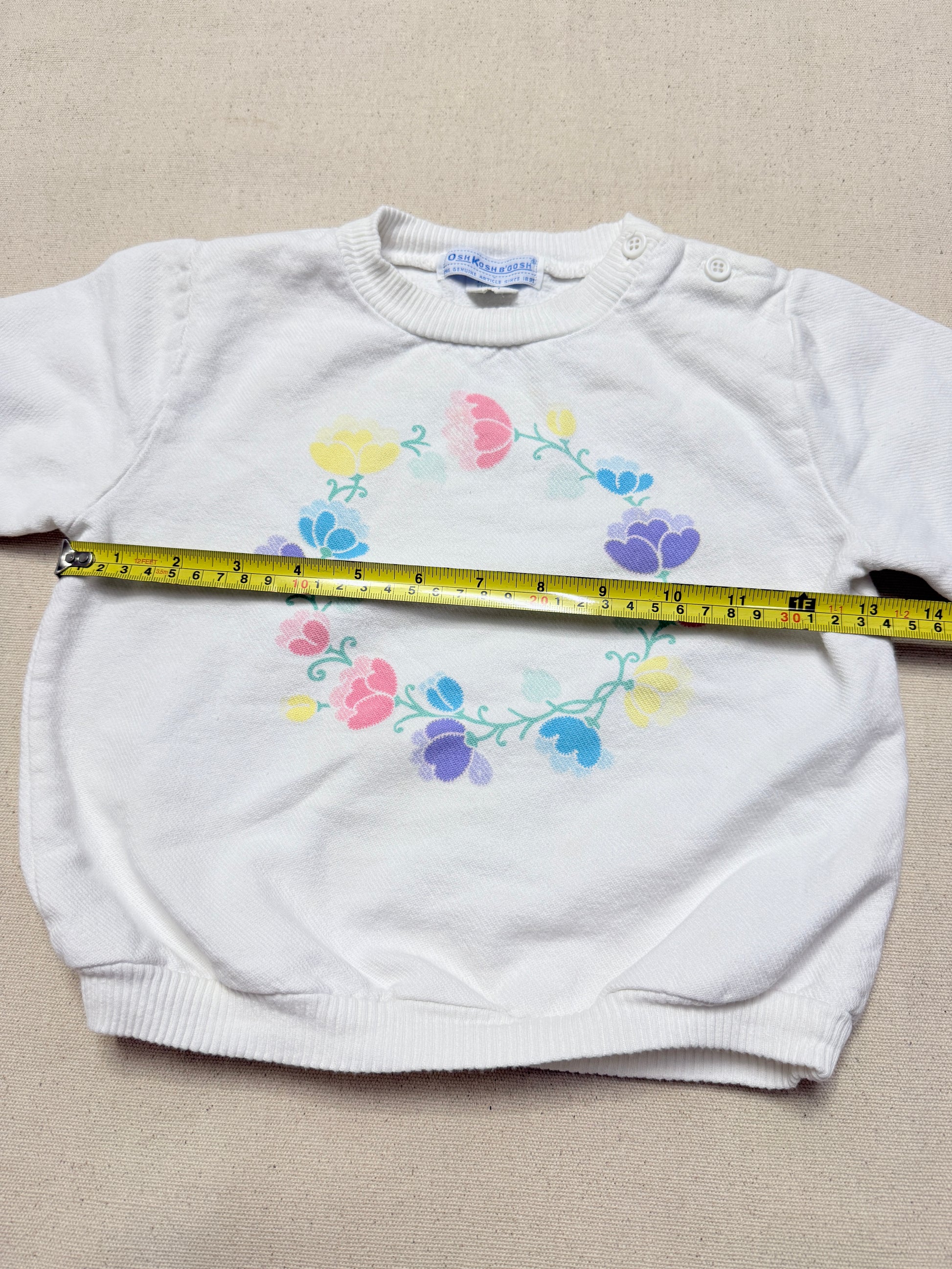 80s 90s Kids Toddler Vintage Oshkosh Bgosh Flawer Print White Longsleeve Cotton Top / 2T 3T / Made in USA