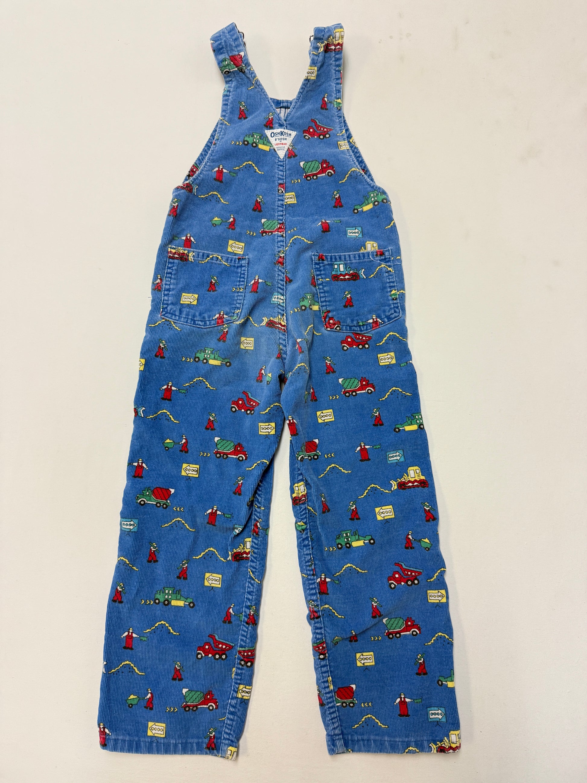 90s Kids Toddler Vintage Oshkosh Bgosh Construction Trucks AOP Blue Corduroy Overall / 5T 6y