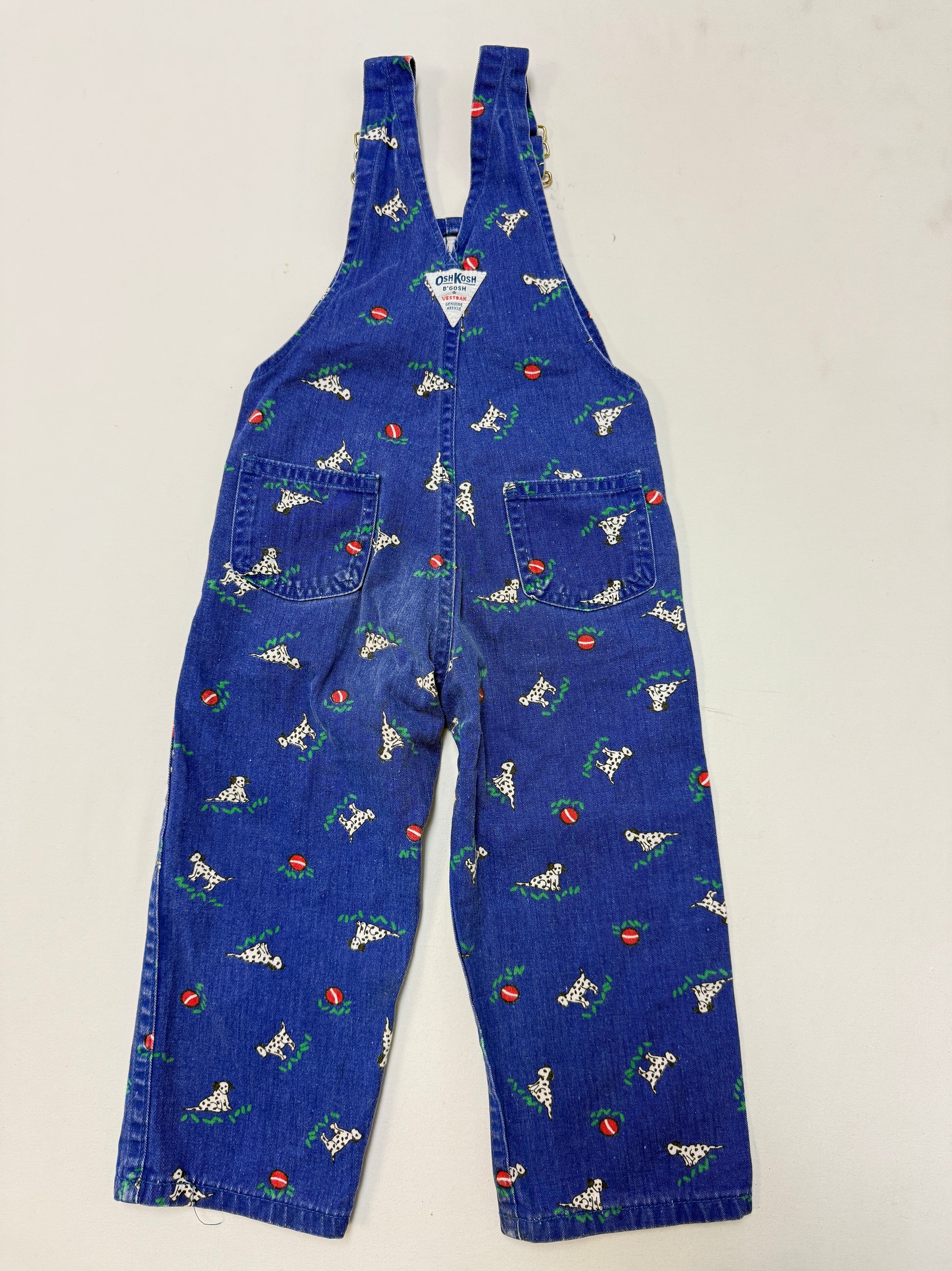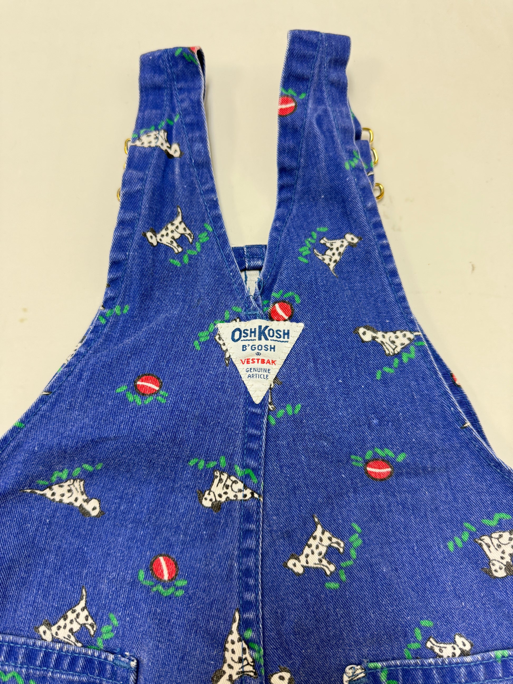 90s Kids Toddler Vintage Oshkosh Bgosh Dalmatian Dog AOP Blue Cotton Overall / 3T