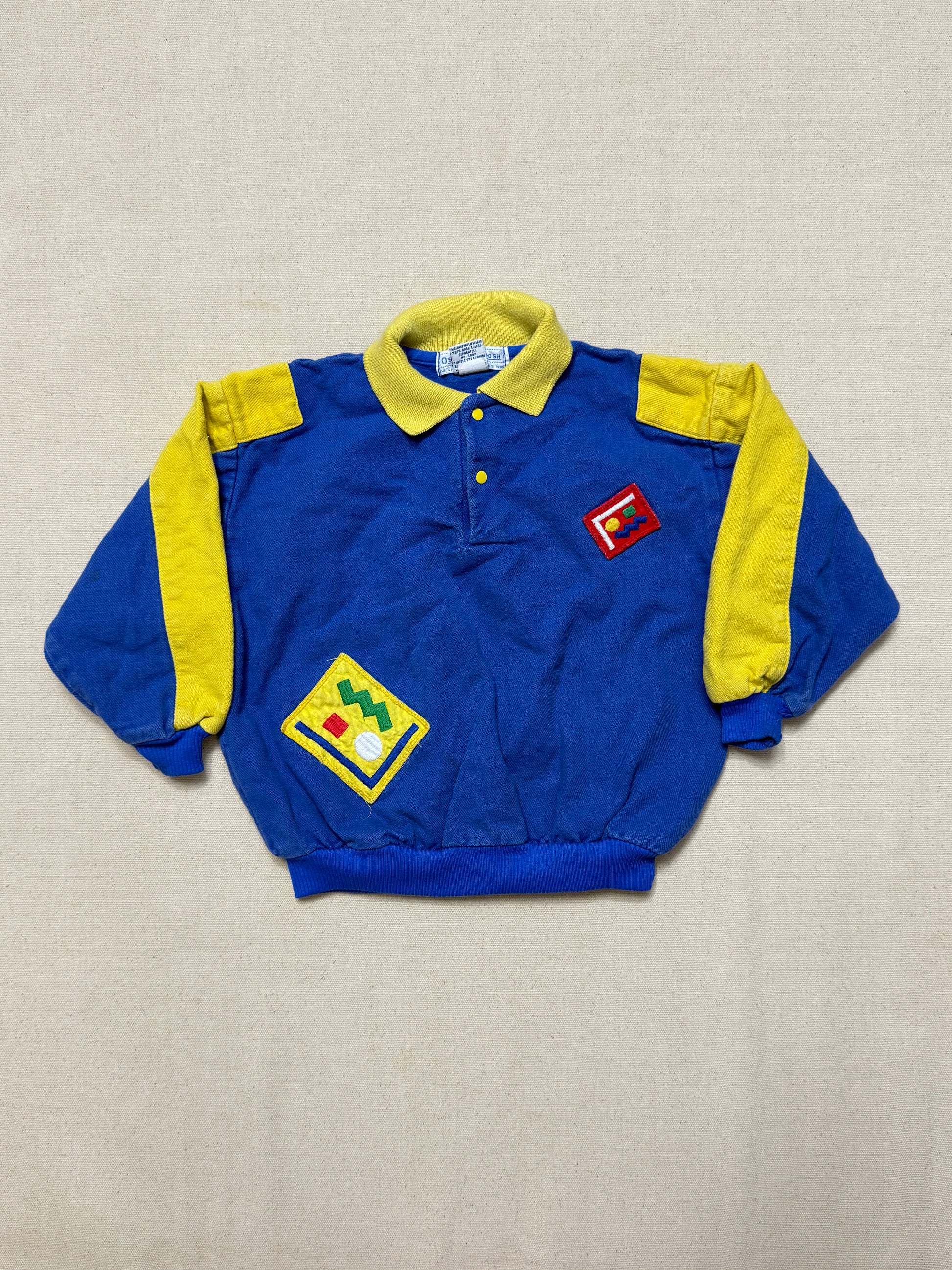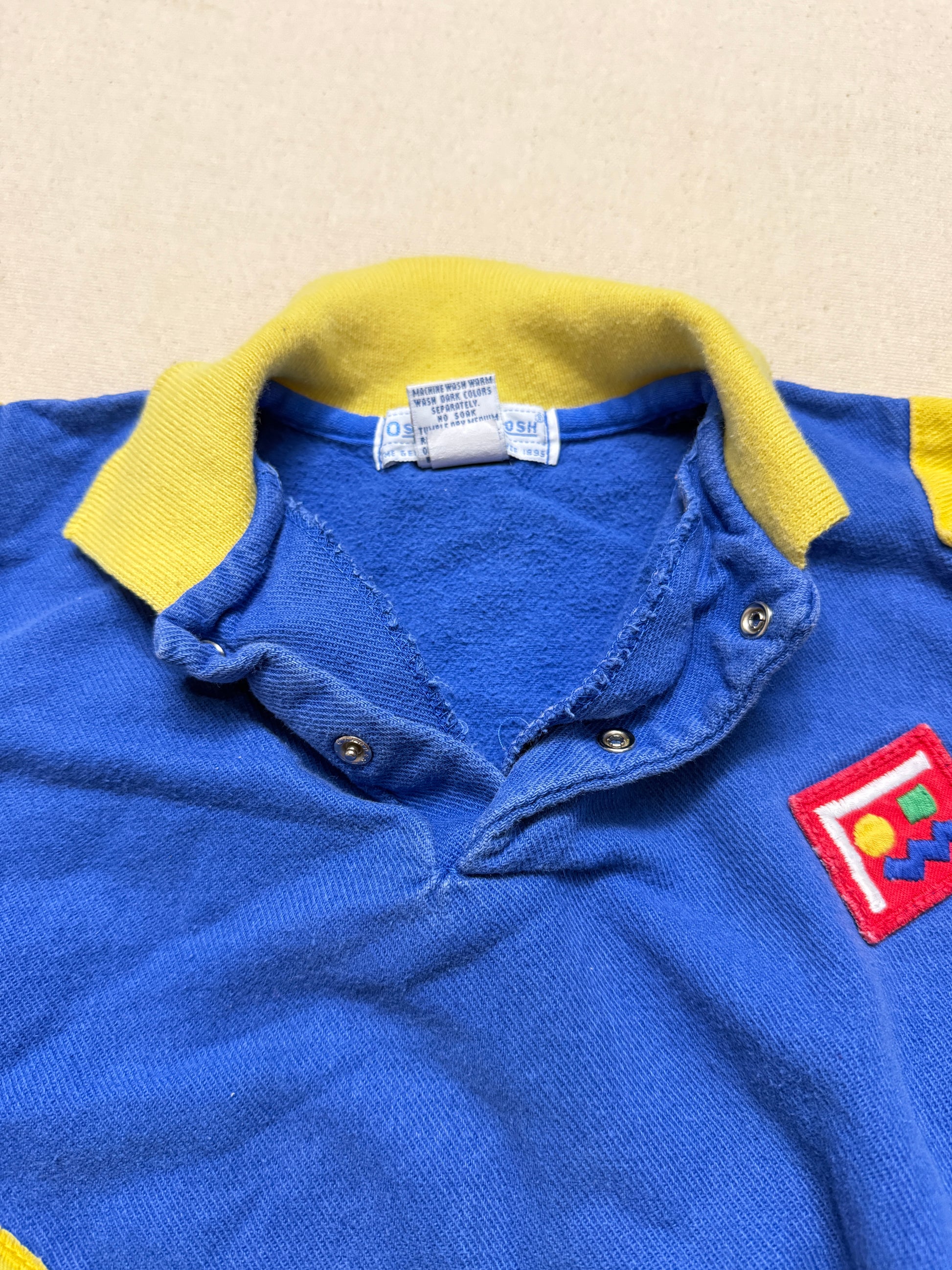 80s 90s Kids Toddler Vintage Oshkosh Bgosh Blue Yellow Snap Collared Longsleeve Cotton Top / 3T 4T / Made in USA