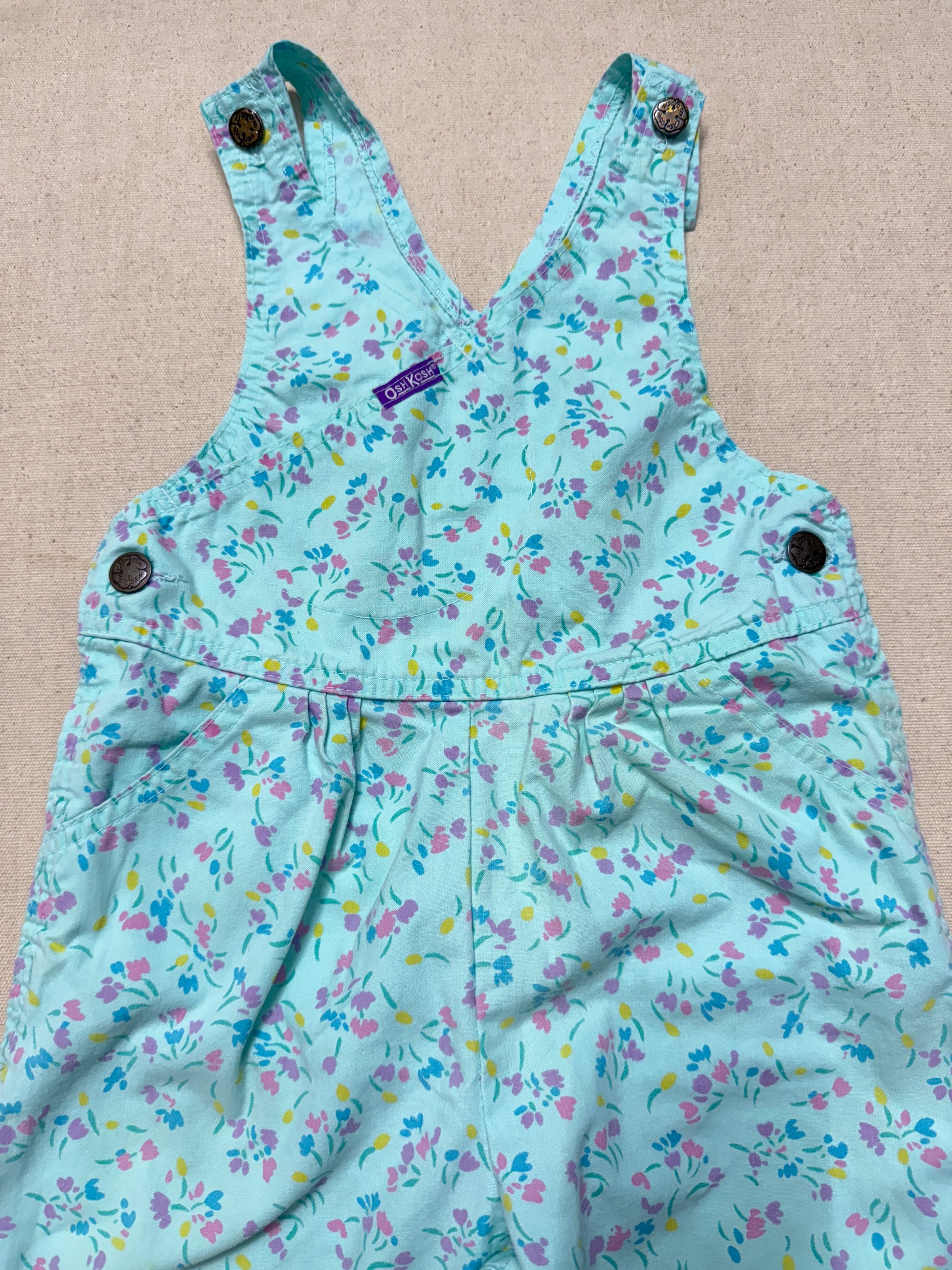 90s Kids Vintage Oshkosh Bgosh Flower AOP Mint Green Cross Front Lightweight Overall / 4T 5T 6y / Made in USA