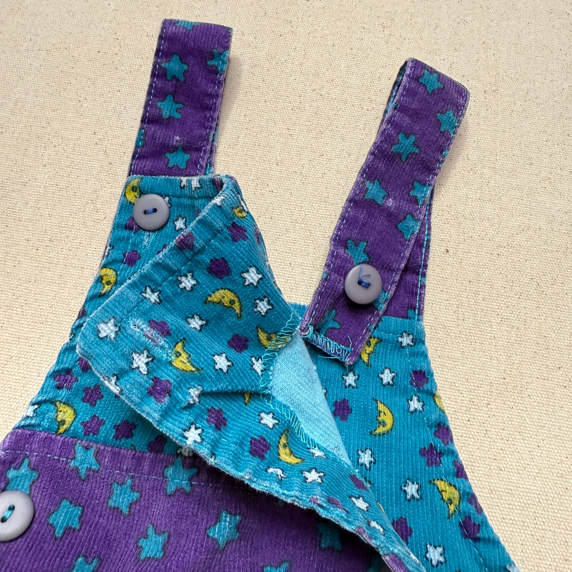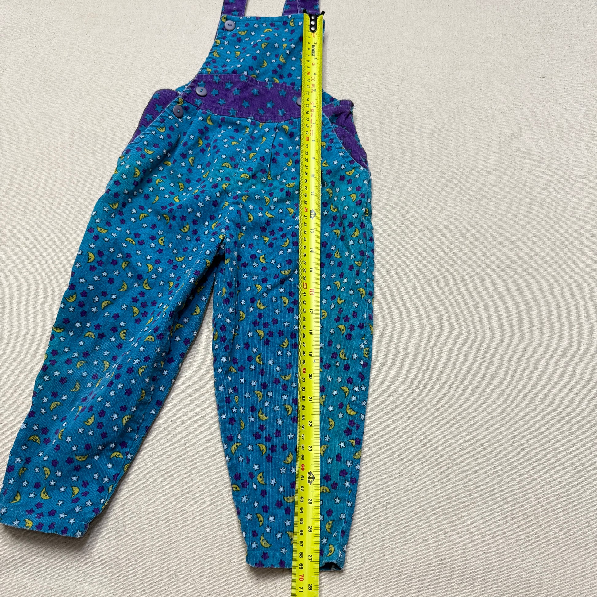90s Kids Toddler Vintage Star Moon AOP Longsleeve Tshirt & Corduroy Overall 2pc Set / 24m 2T 3T