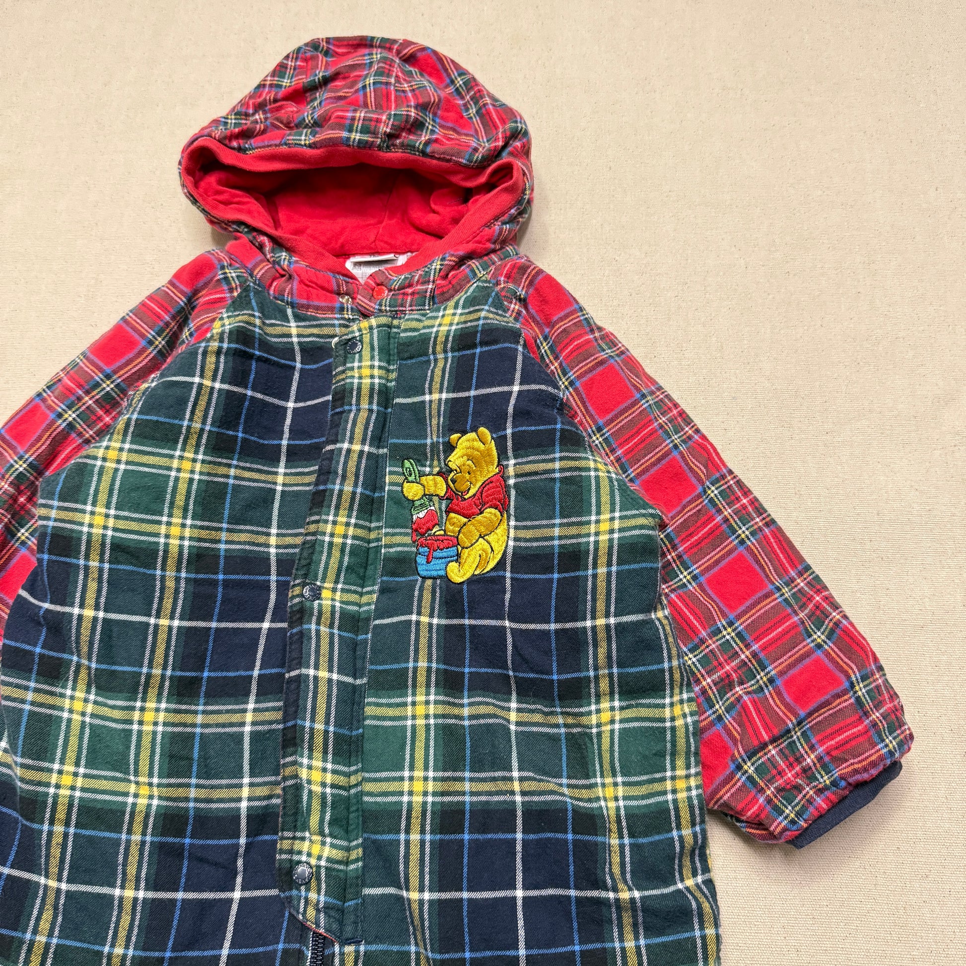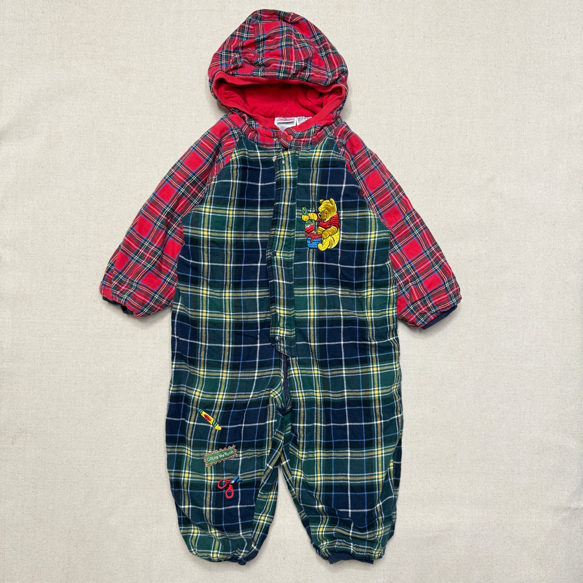 Vintage The Disney Store Winnie the Pooh Plaid Check Thick Winter Romper / 24m 2T 3T