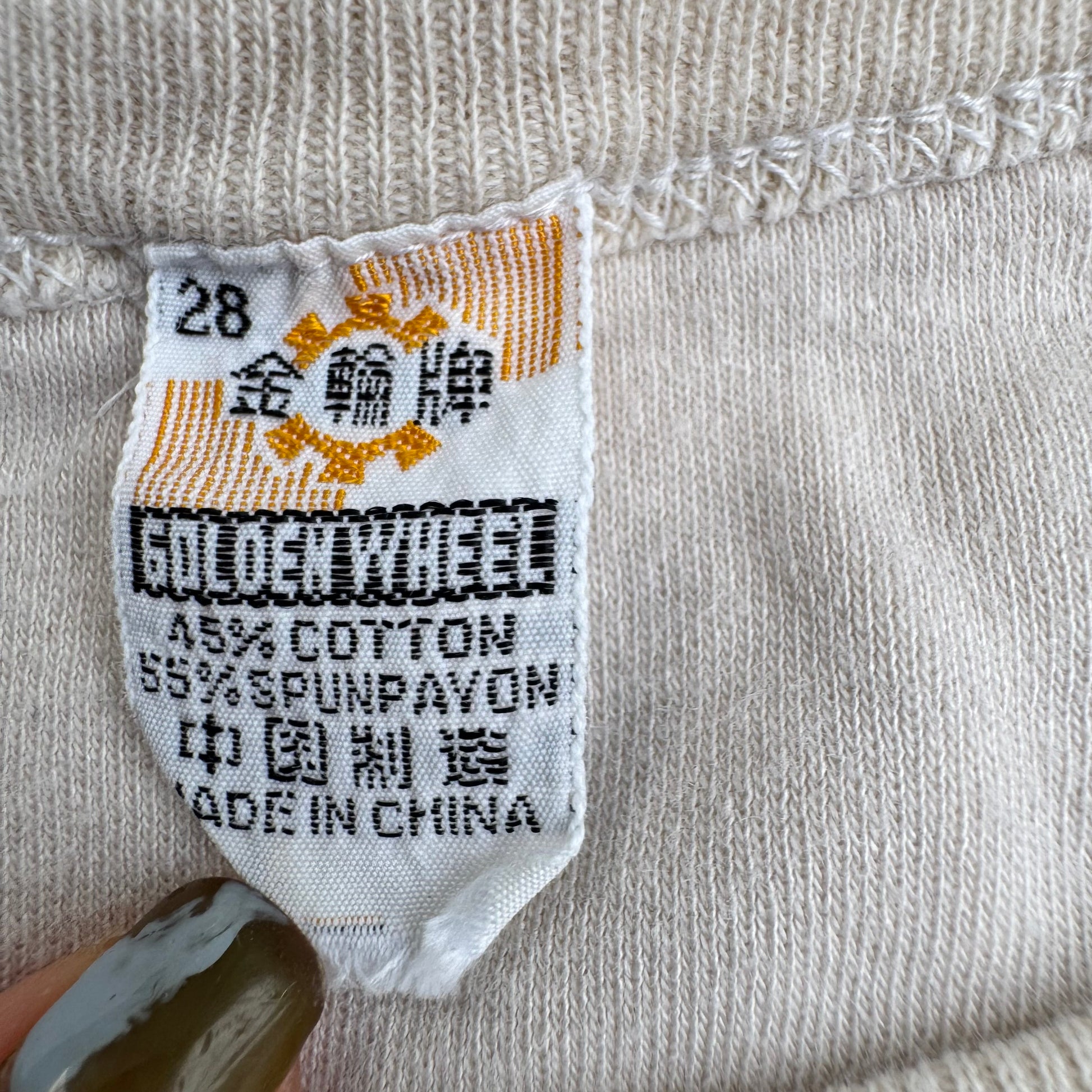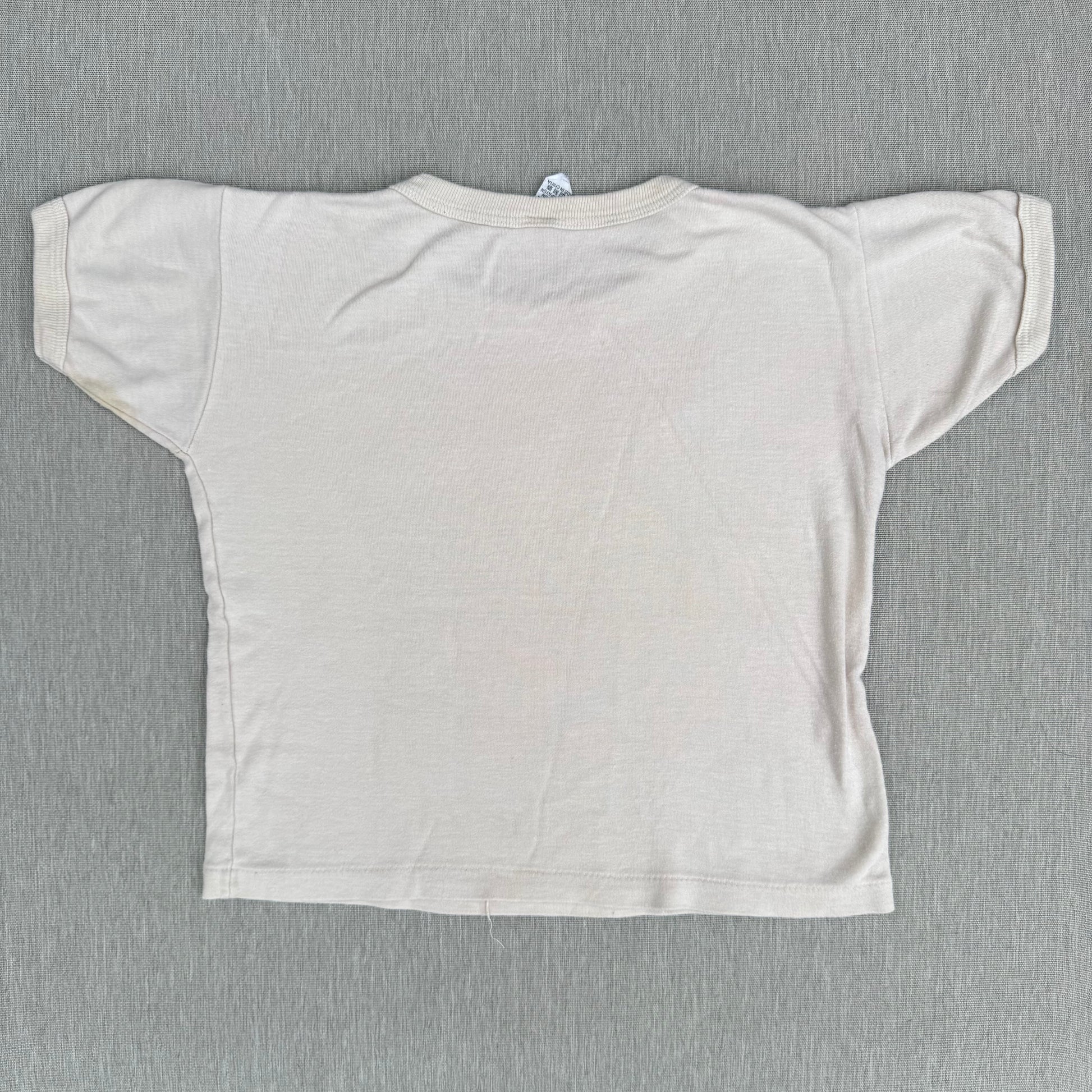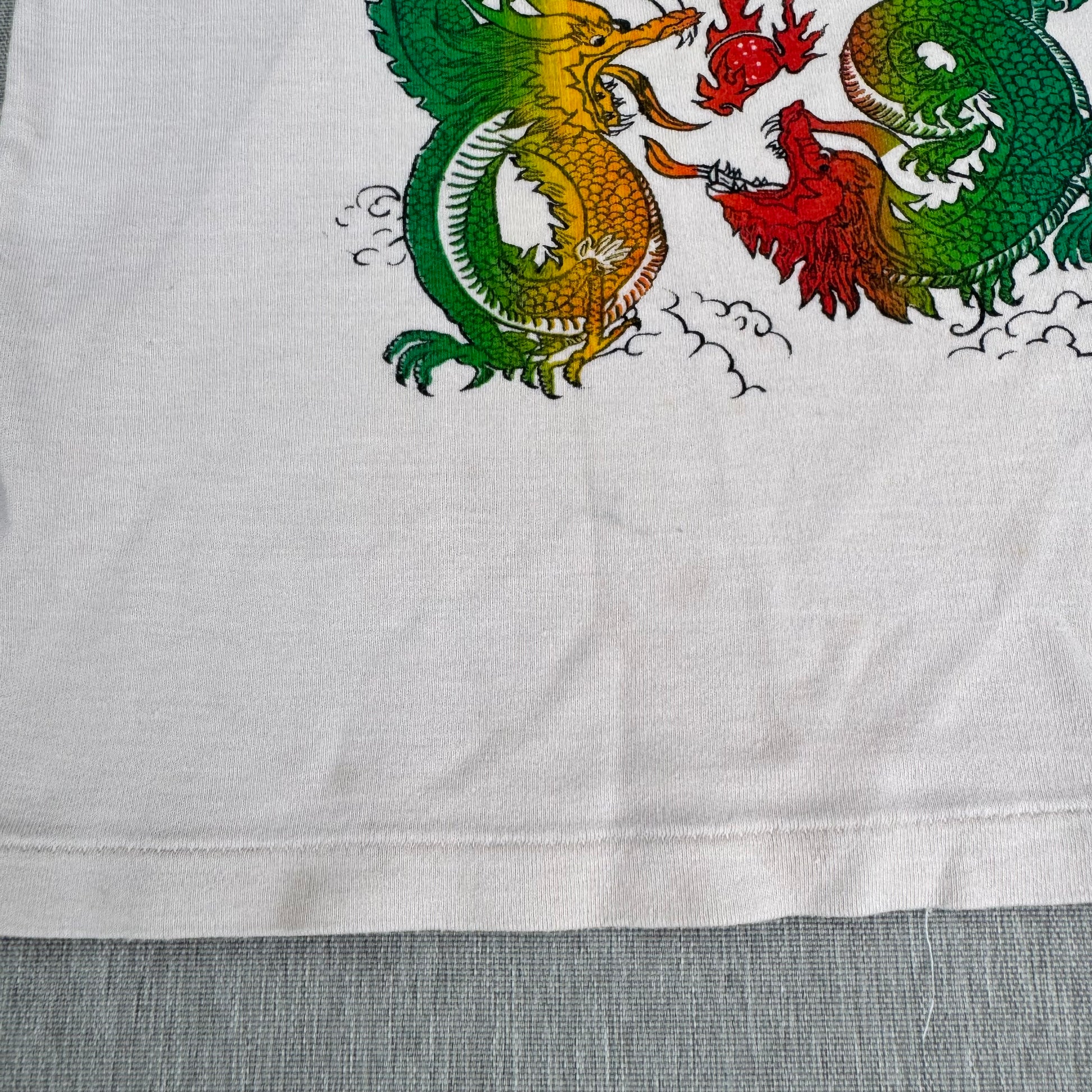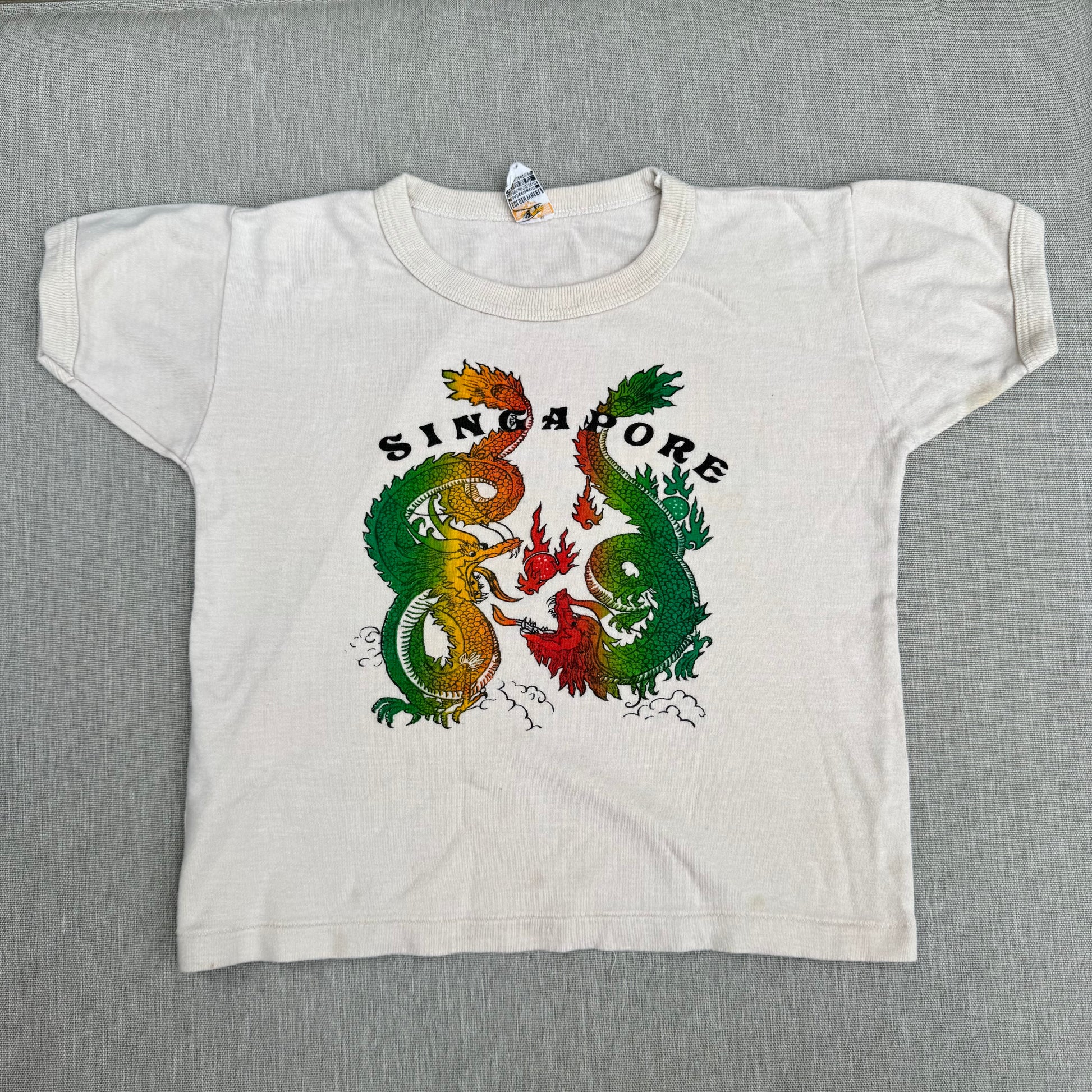 70s Kids Vintage Singapore Dragons Print on a Beige Short Sleeve T-Shirt 5Y 6Y