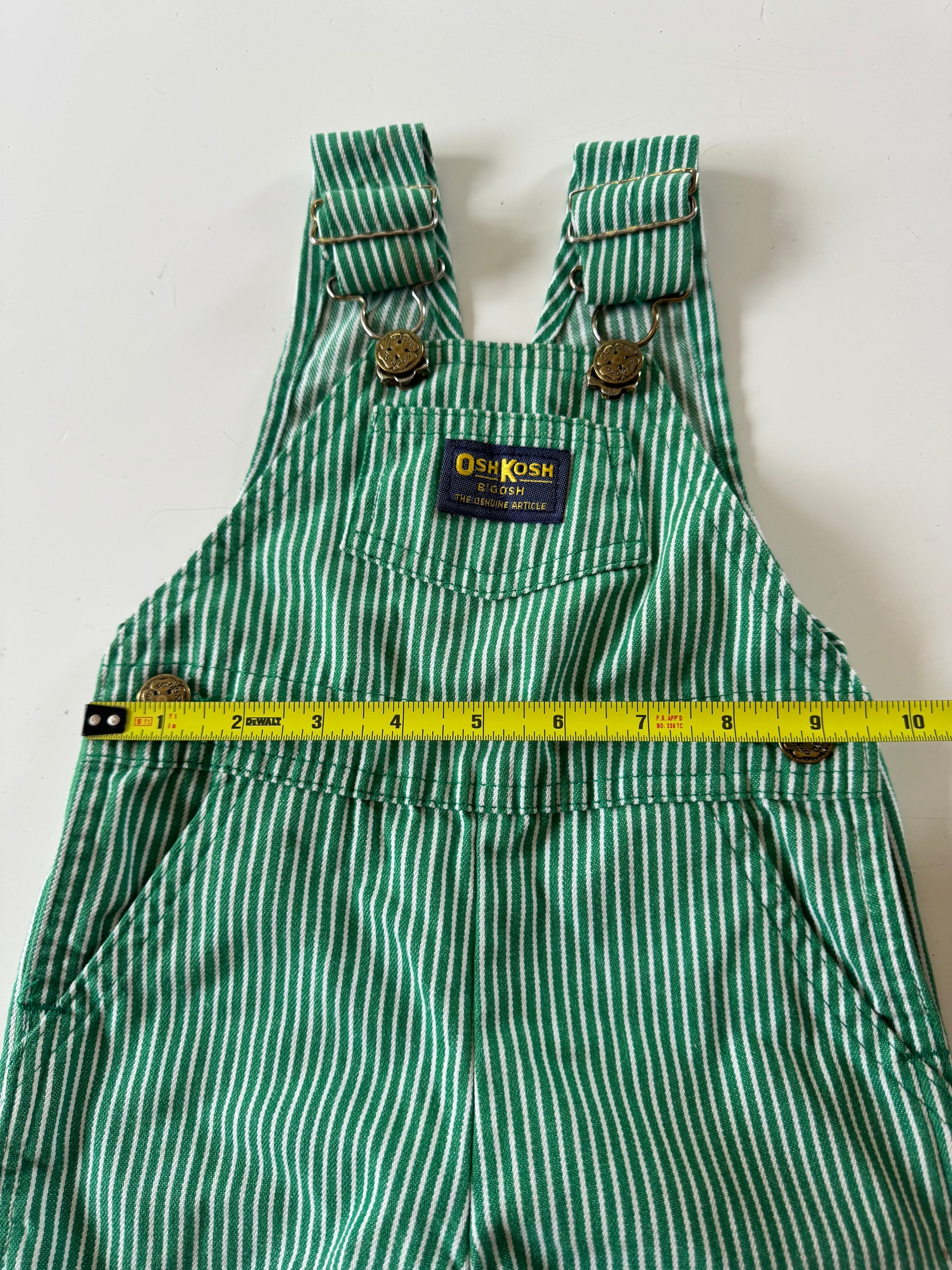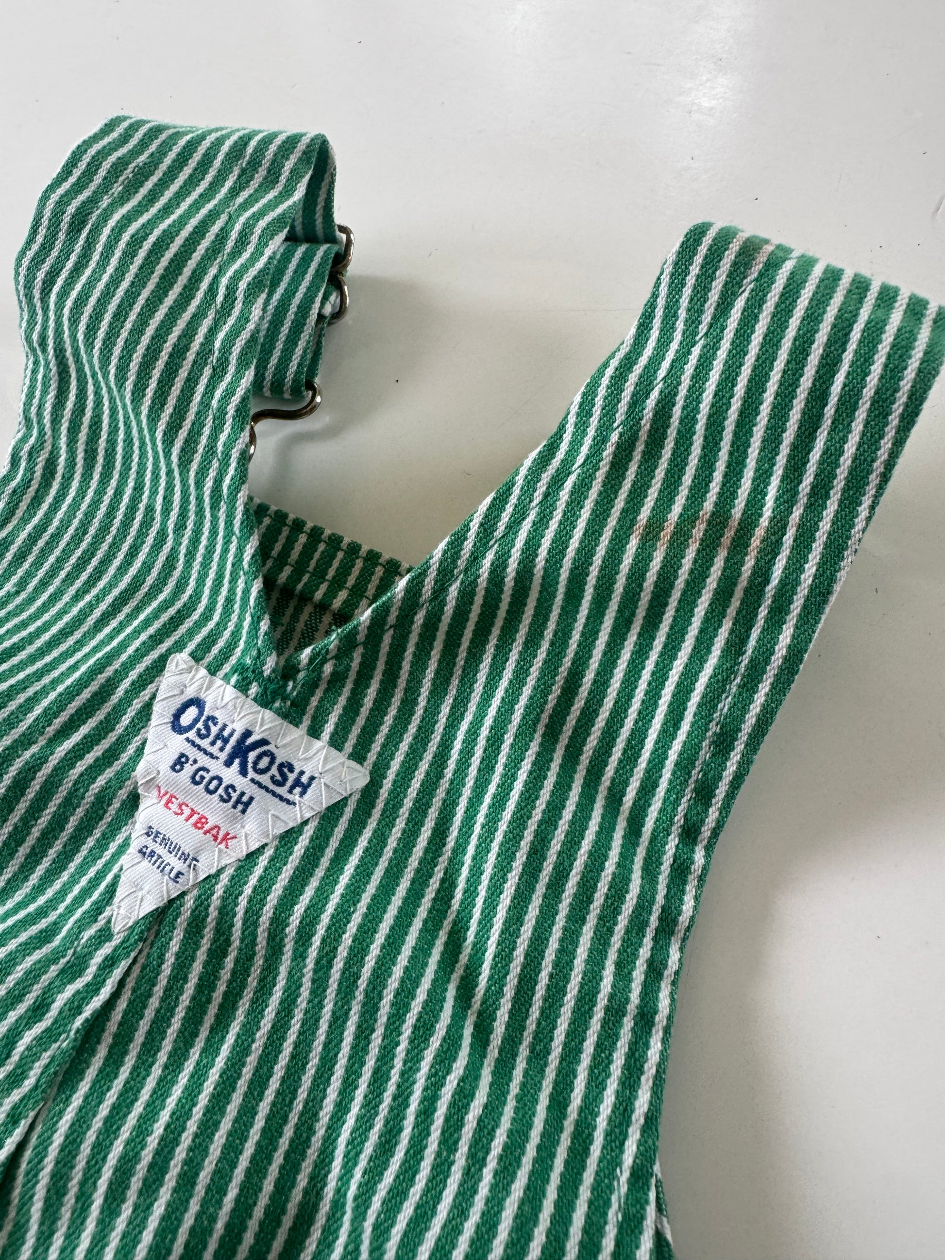 90s Kids Toddler Infant Vintage Baby B’Gosh Oshkosh Green White Stripe Overall //12m / Made in USA