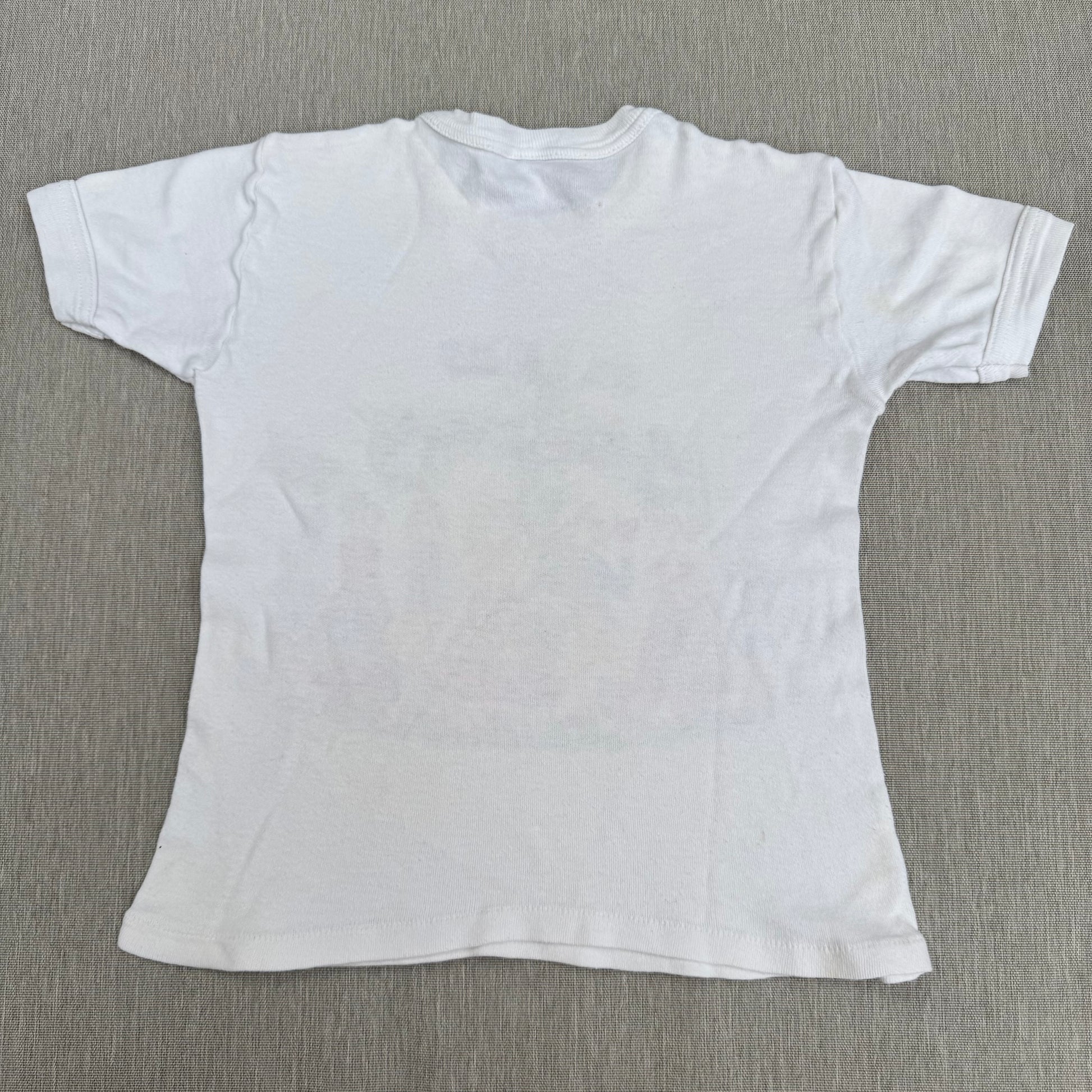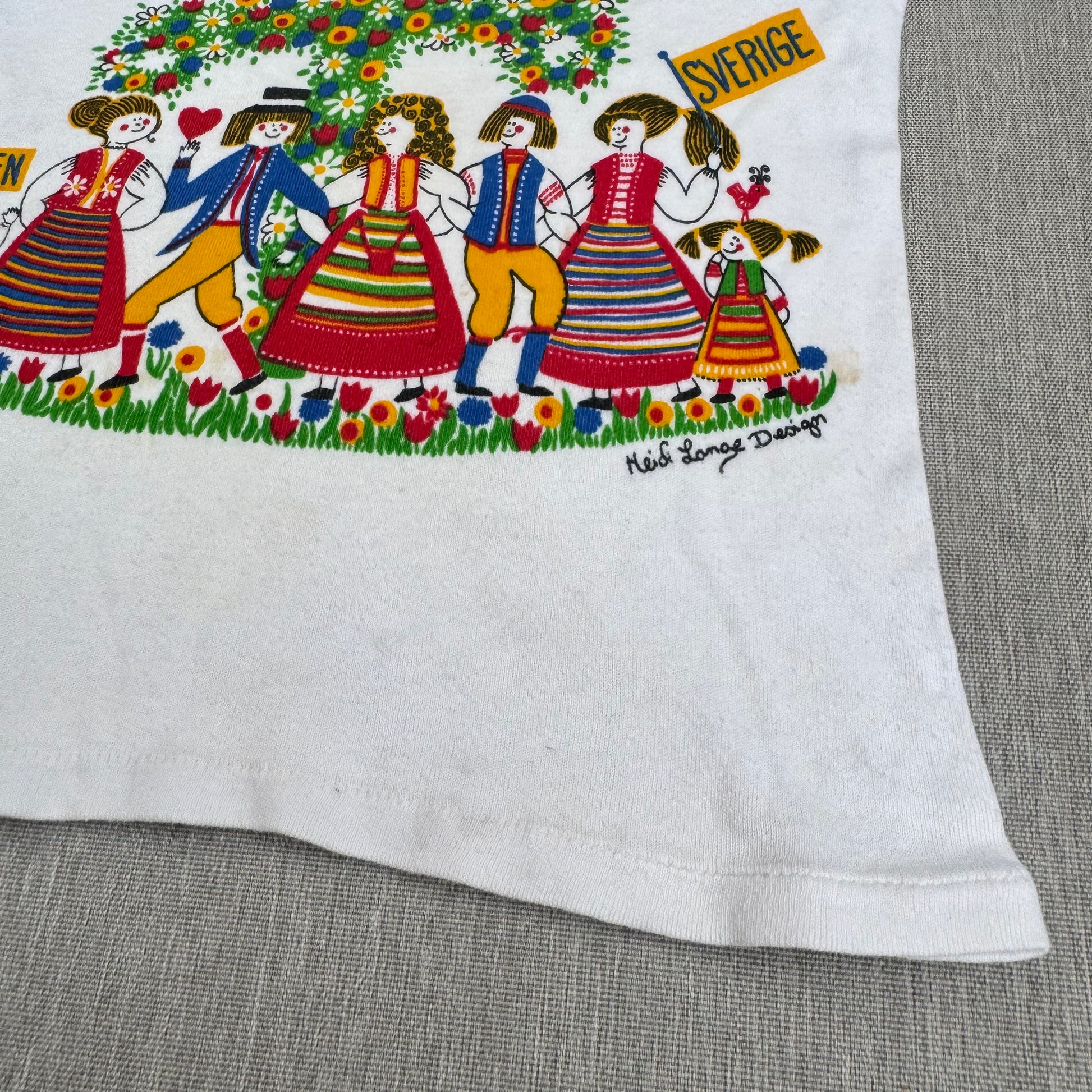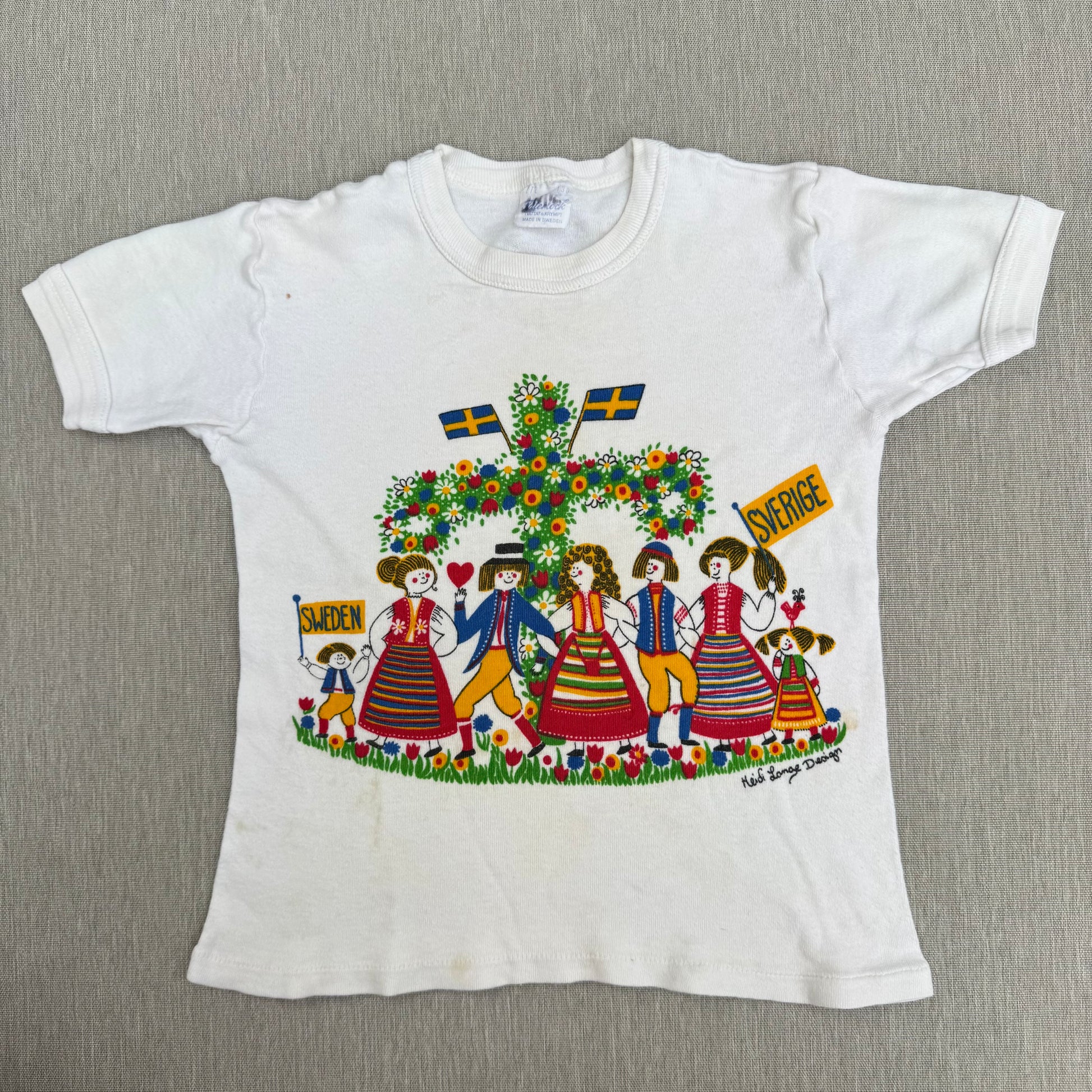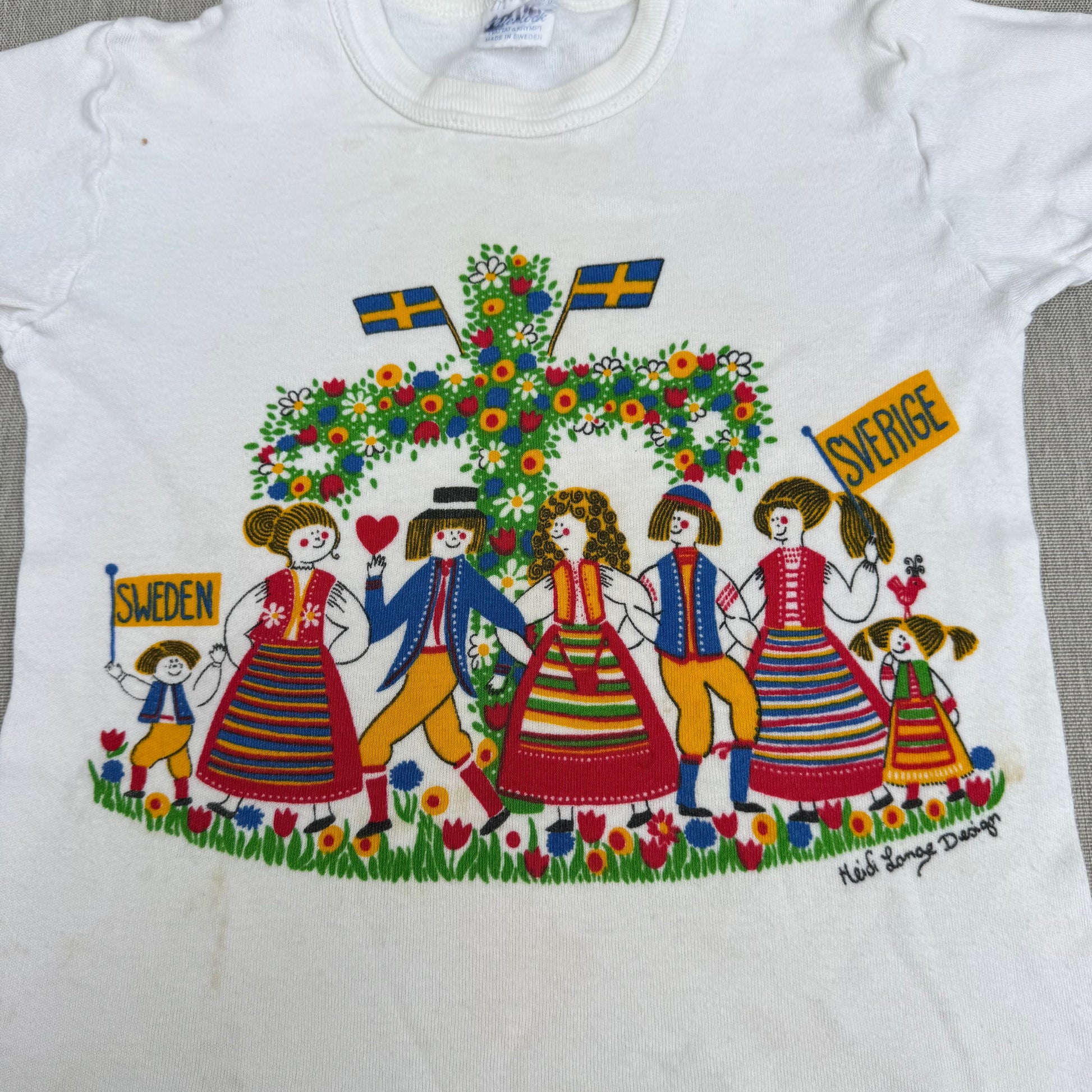 70s Kids Vintage Sweden Cute Print Design Off White Short Sleeve T-Shirt Made in Sweden 3Y 4Y 5Y