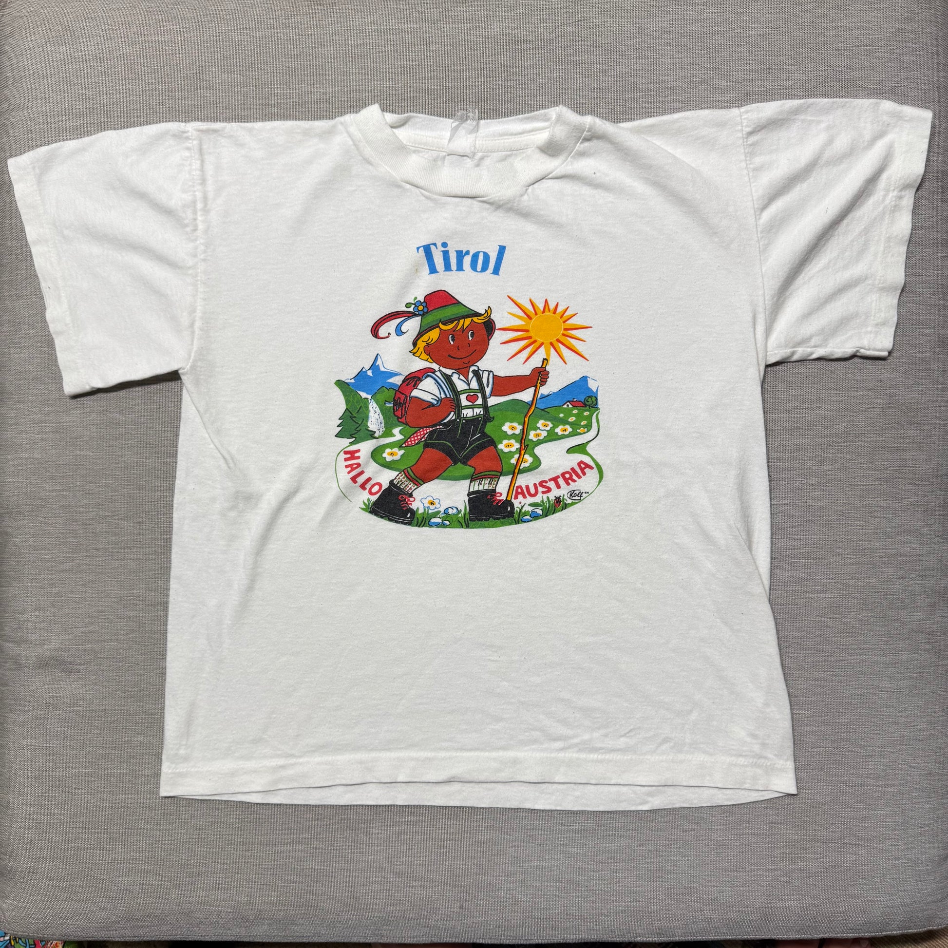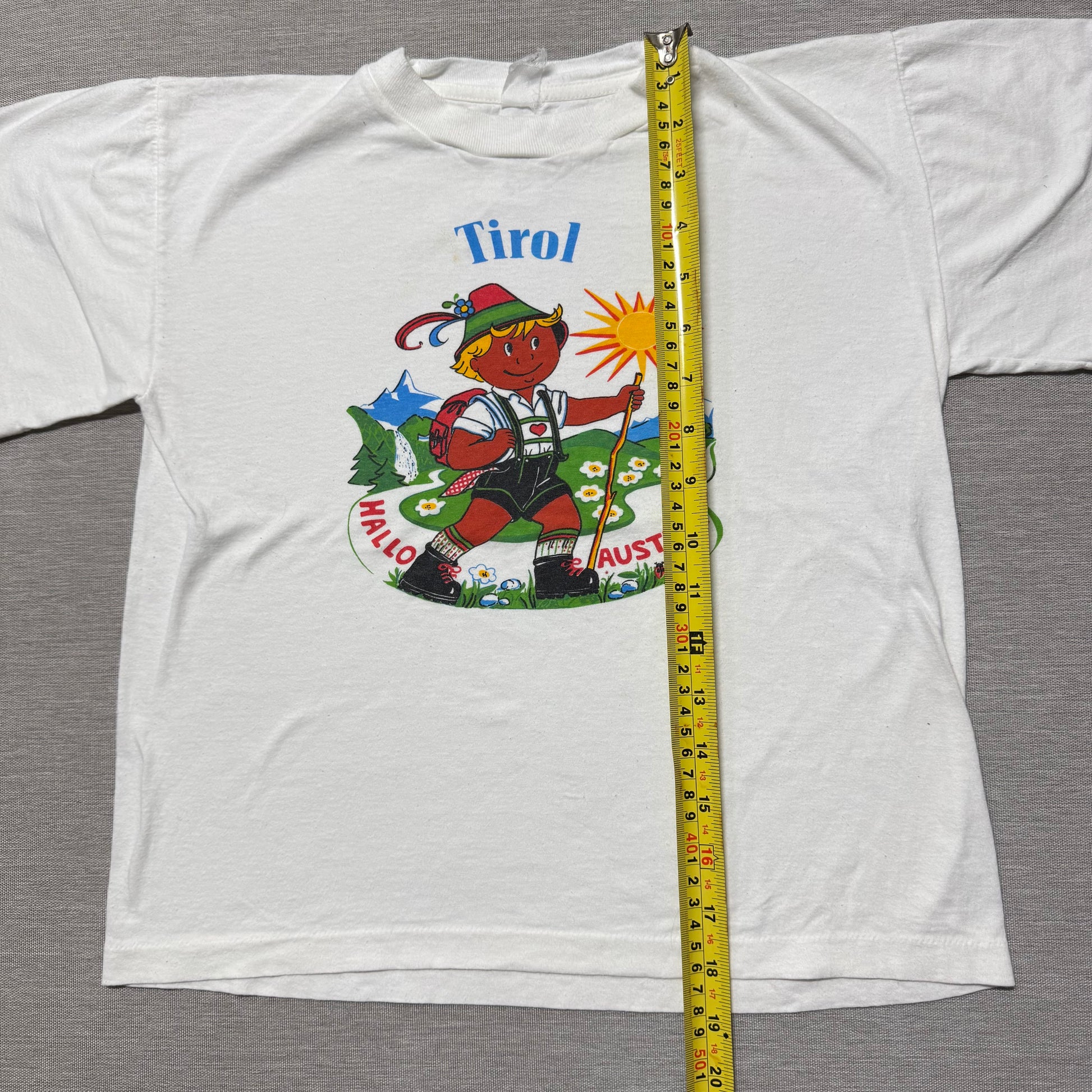 70s Kids Vintage Tirol Hallo Austria Kid Yodeller Print White Single Stitch Short Sleeve T-Shirt 7Y 8Y 9Y Baby Tee XS Adult