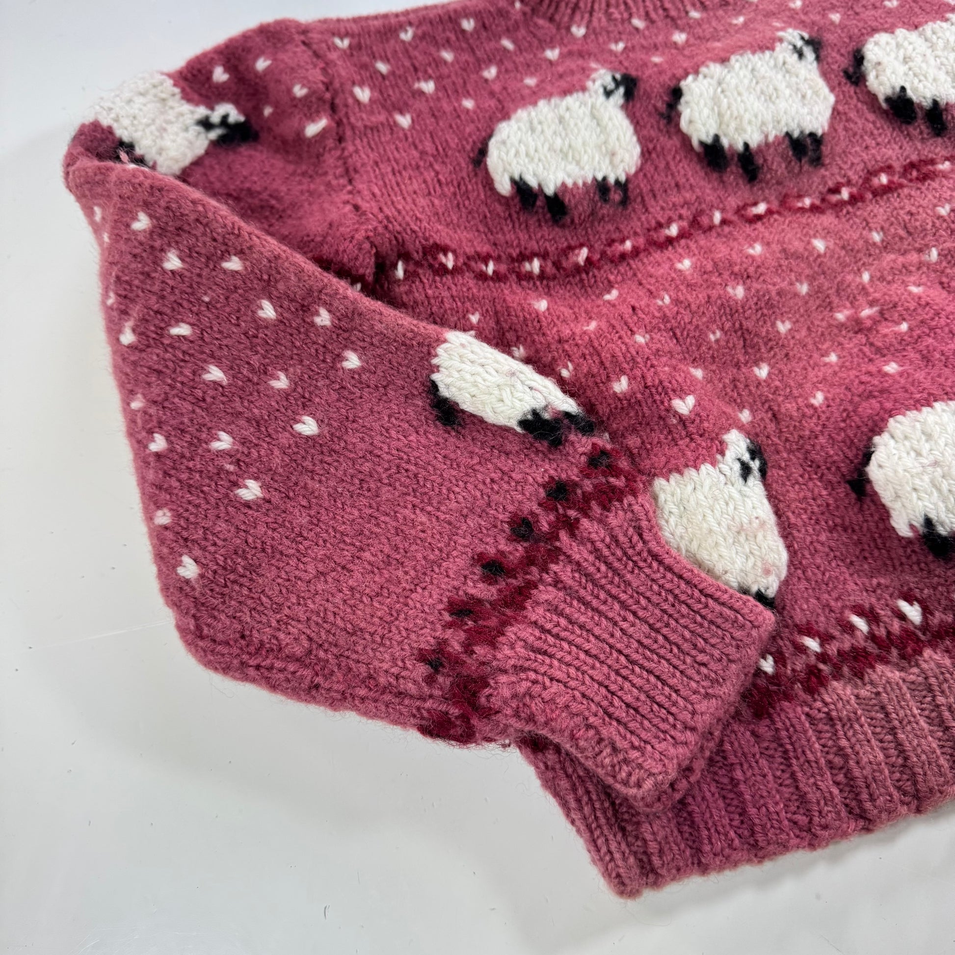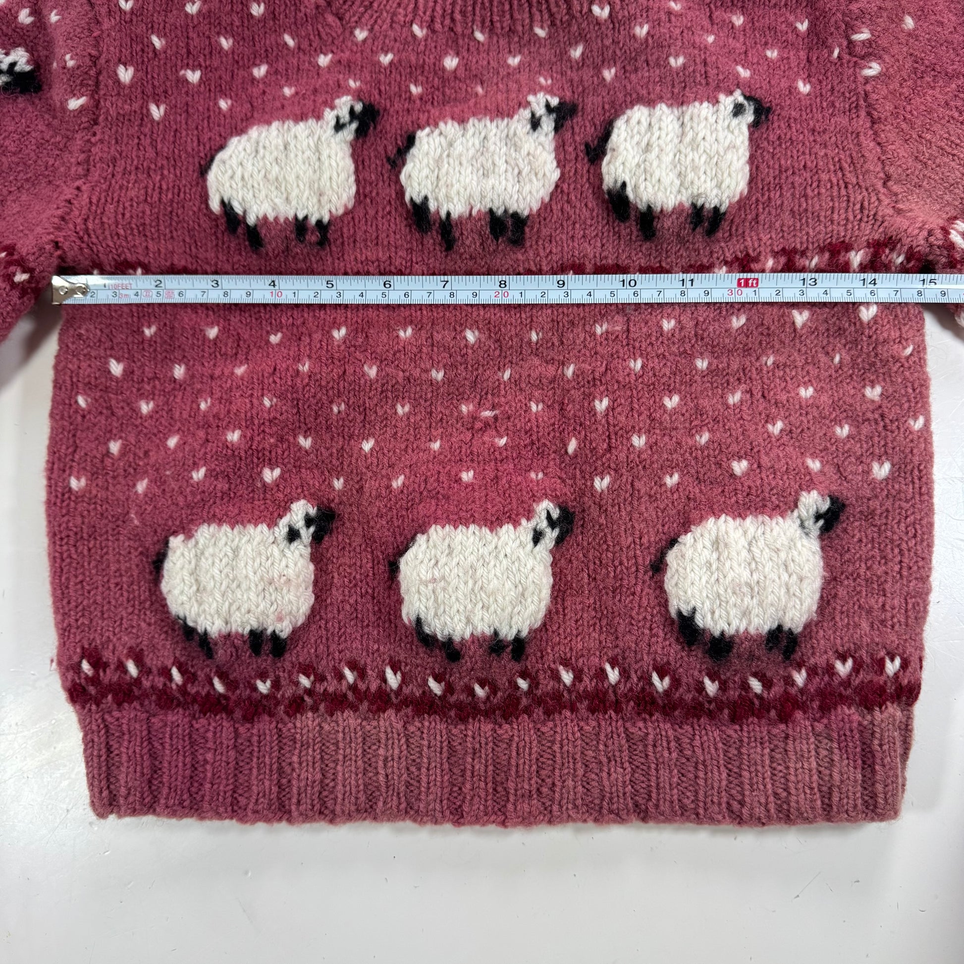 Kids Toddler Vintage Hand Knit Beautiful Maroon Pullover Sweater With Puff Shoulder AOP Sheep r 4Y 5Y 6Y