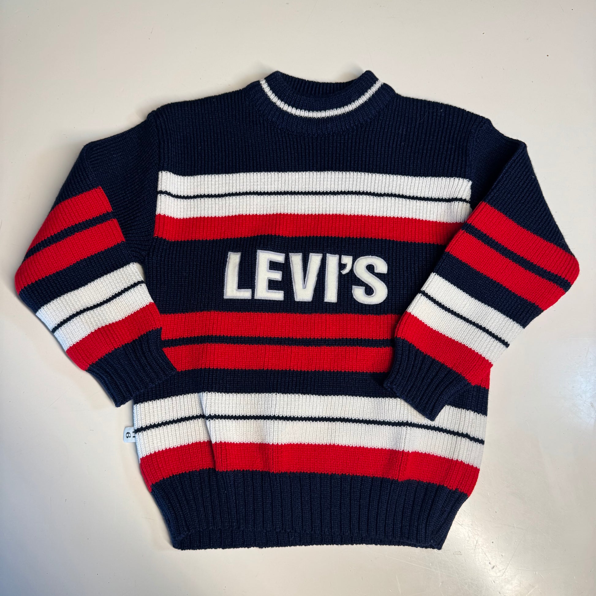 80s Vintage Kids Big Logo Levi’s Knit Striped Navy White Red Pullover Long Sleeve Sweater 4Y 5Y 6Y